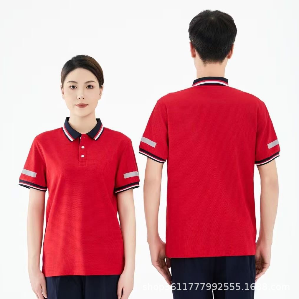 夏の襟折り作業服薄手ポロシャツ企業工衣半袖ロゴ印字団体パーティ文化シャツ