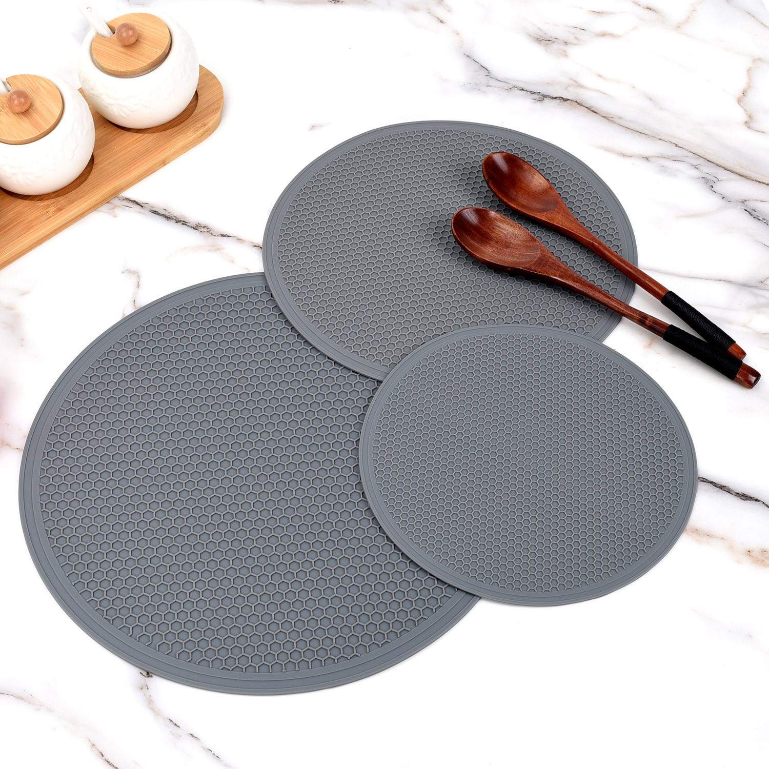 厚手のシリコン断熱マット3点セットの高温家庭用キッチンテーブルの滑り止め汚れ防止マット