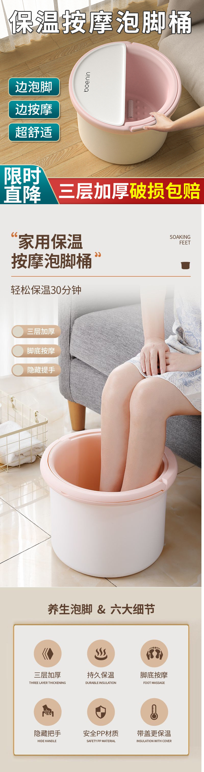 yvpriGYFDyRpEBzPvptq0pvKiEs=送料無料 層状断熱フットバケツ 家庭用健康マッサージ足洗面器 下肢用 子供用