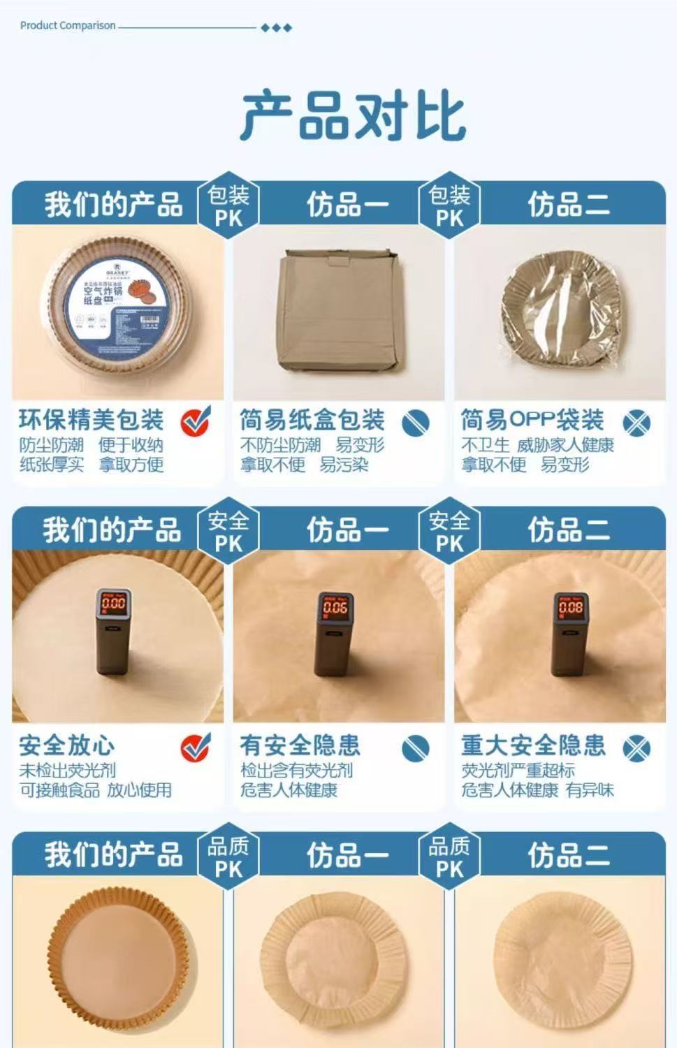 エアフライヤー専用紙プラスチックボックス包装皿油取り紙防油紙ベーキングトレイモップ紙家庭用食品級