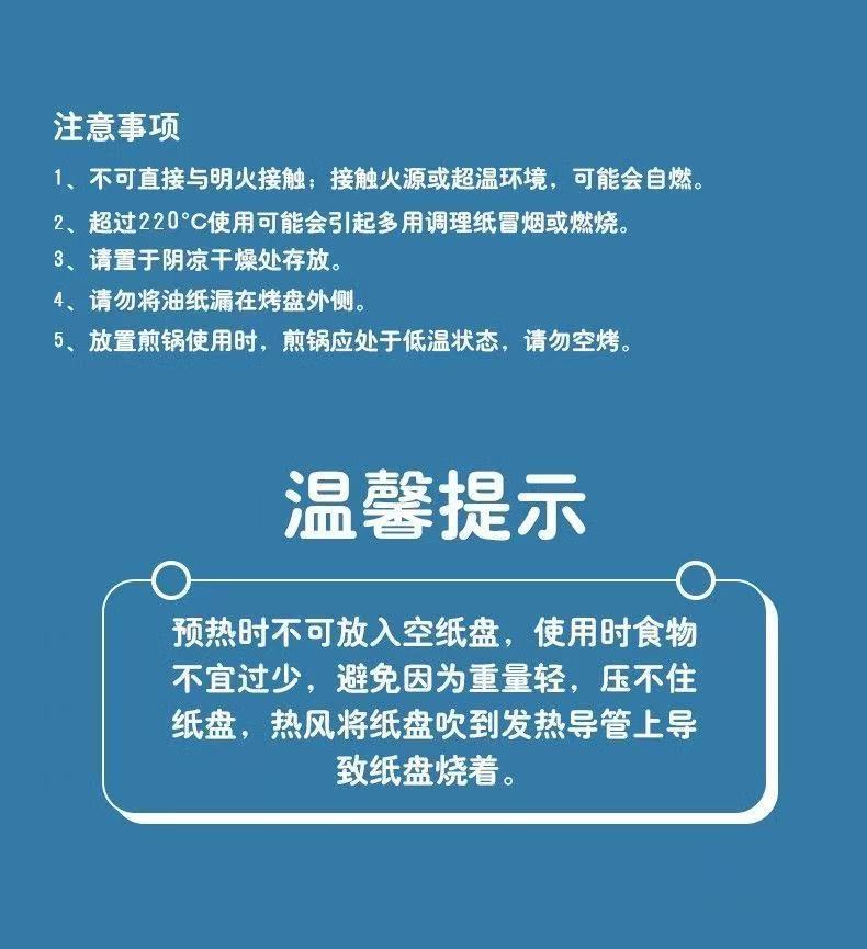 エアフライヤー長方形オーブン電子レンジ複合機専用油取り紙厚さ高温食品級紙皿