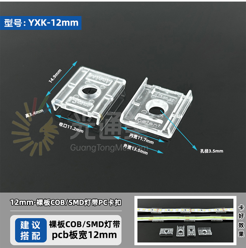PC ハードクリップパッチ 8 ミリメートル/10 ミリメートル/12 ミリメートル固定バックル LED ベアボード SMD/COB ライトカーマプラスチック