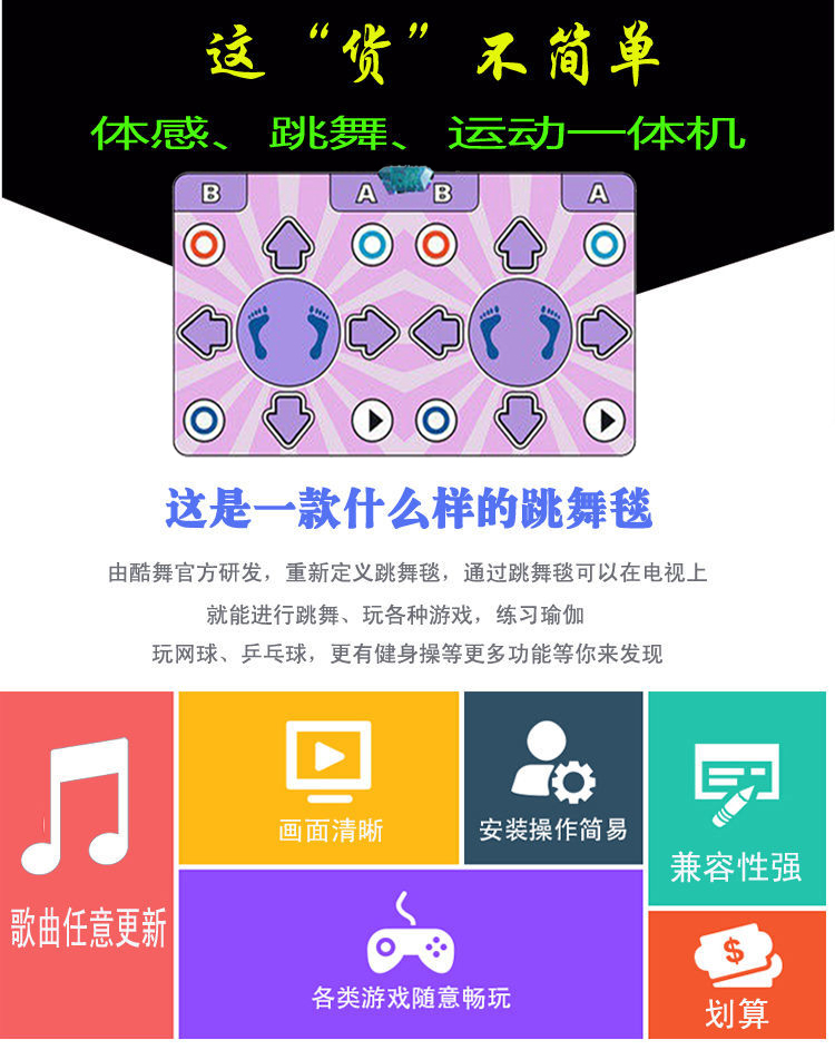 昌酷舞跳舞毯电视专用跑步无线双人家用3D体感游戏机垫单人电脑