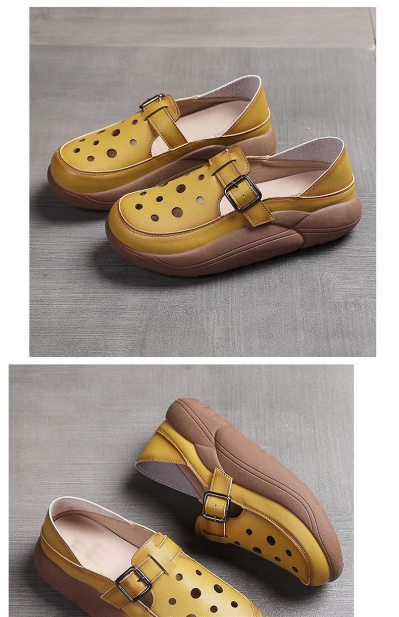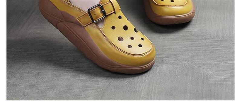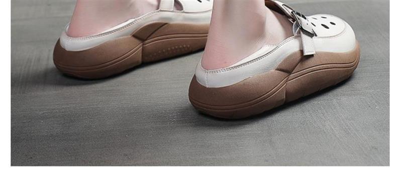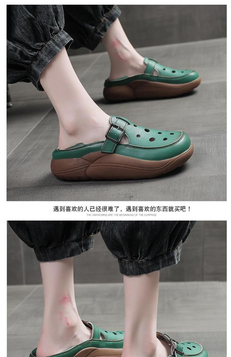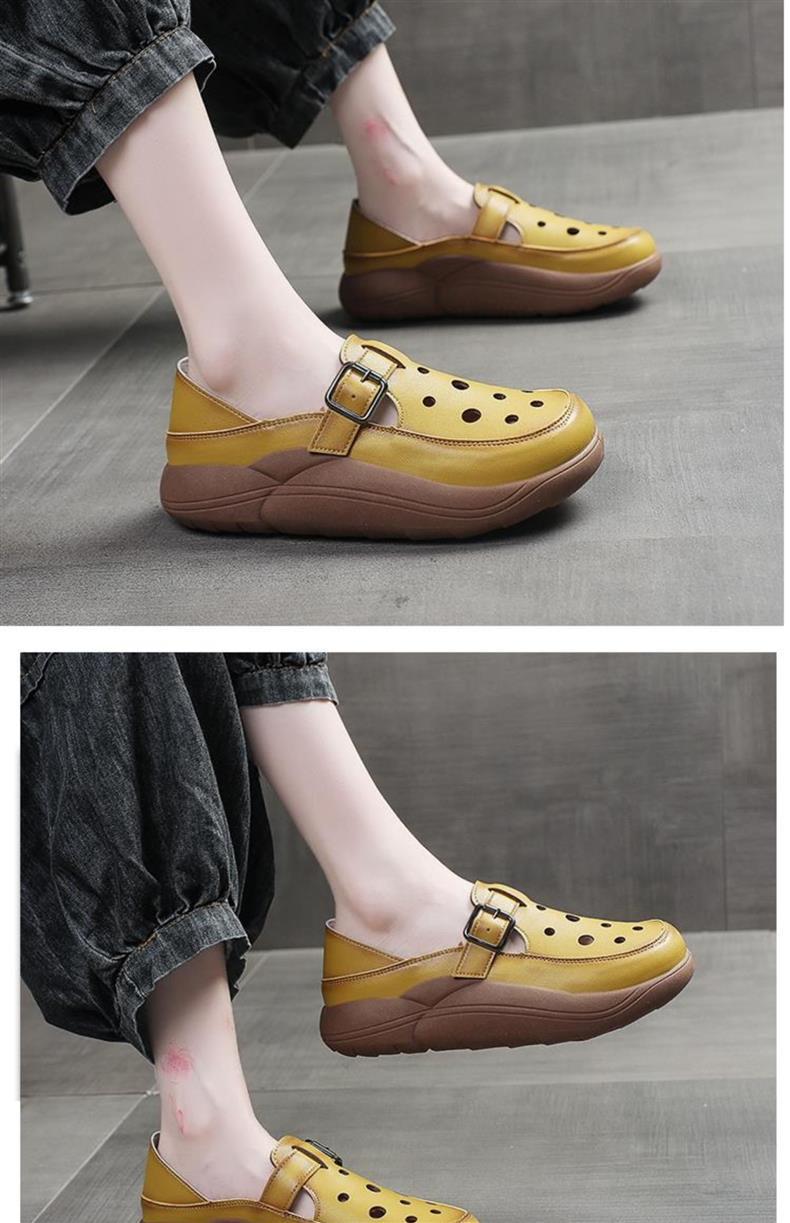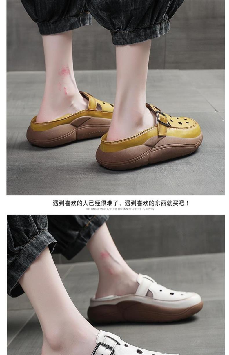 レトロ包頭サンダル春と夏のアウターウェア新しいファッションママの靴ソフトレザー厚底通気性中空ツーピアス下駄