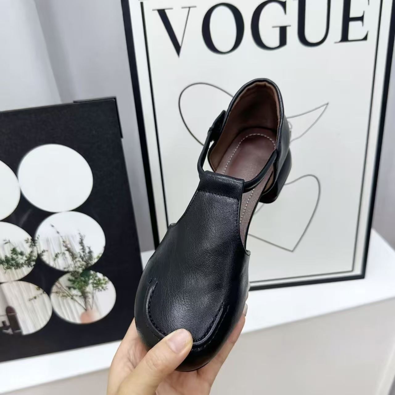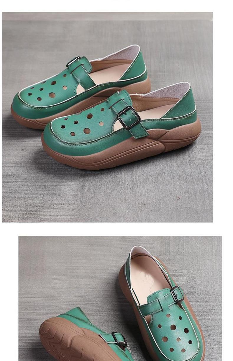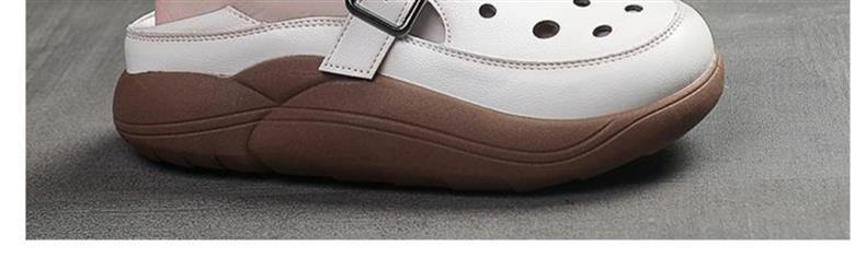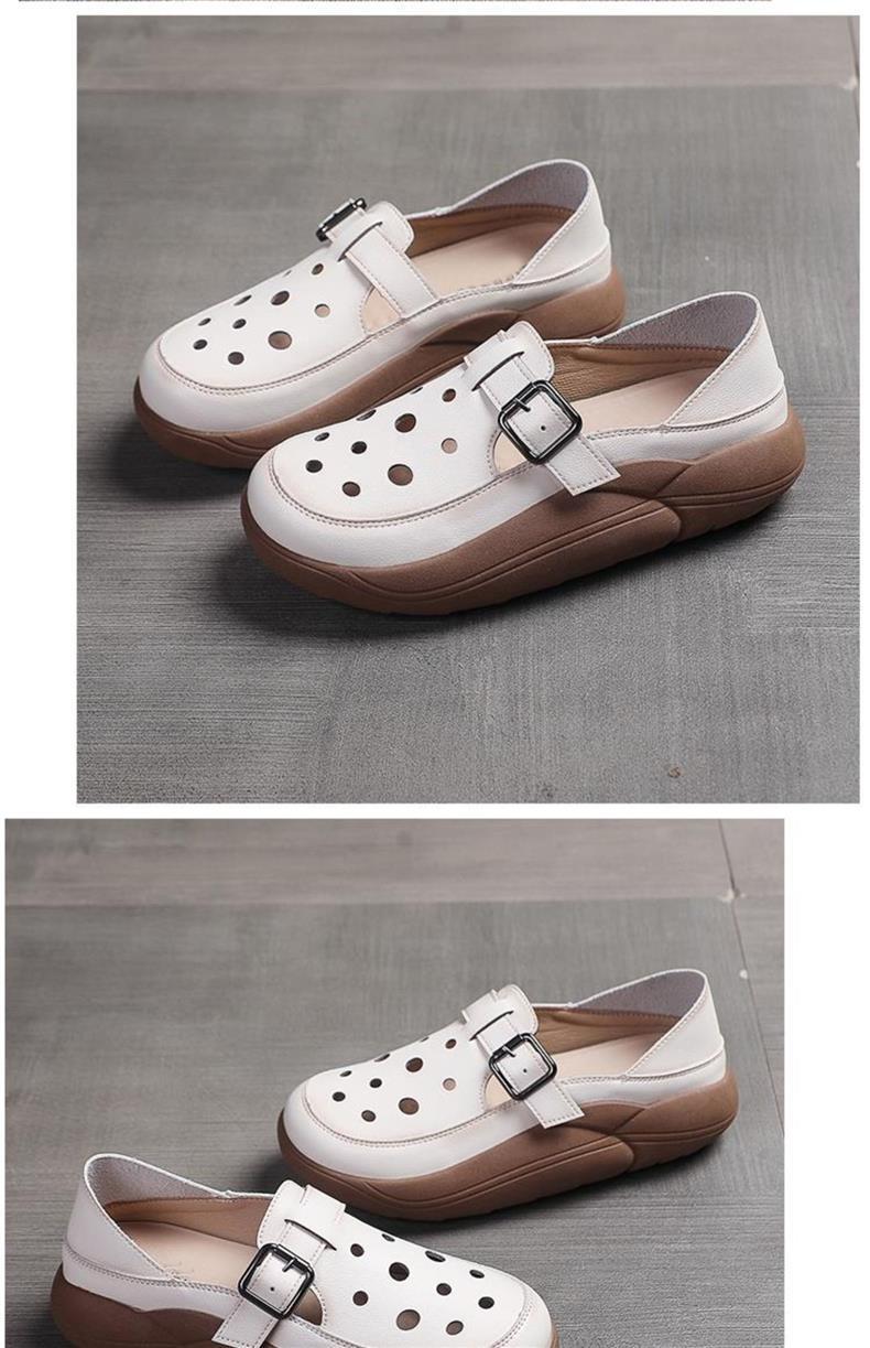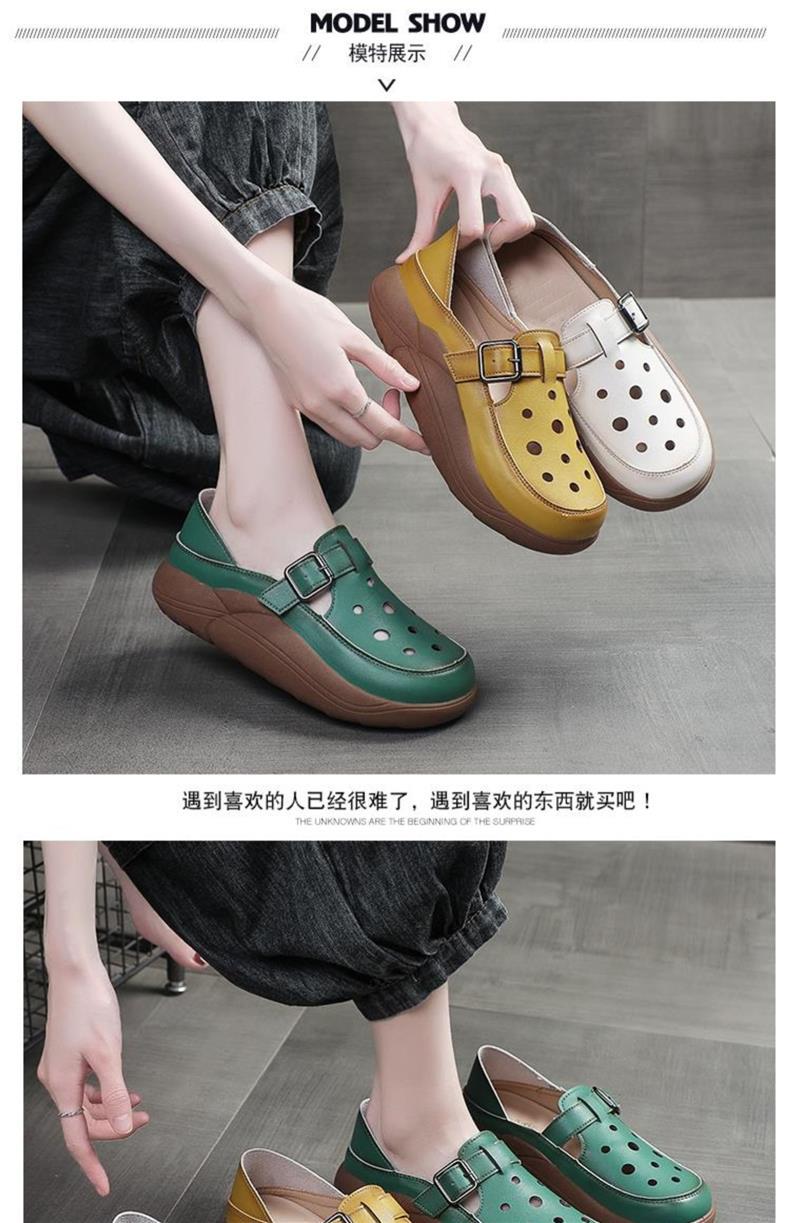 小众复古中年妈妈鞋女秋季皮面镂空洞洞鞋软底一脚蹬厚底两穿单鞋