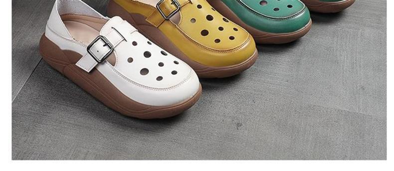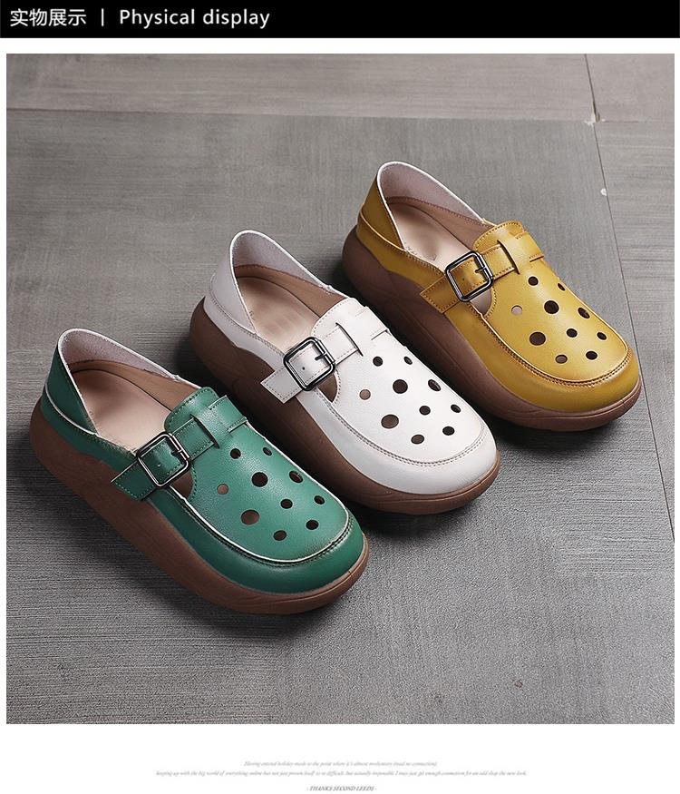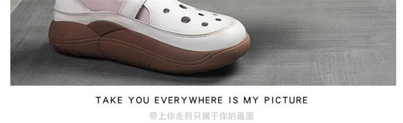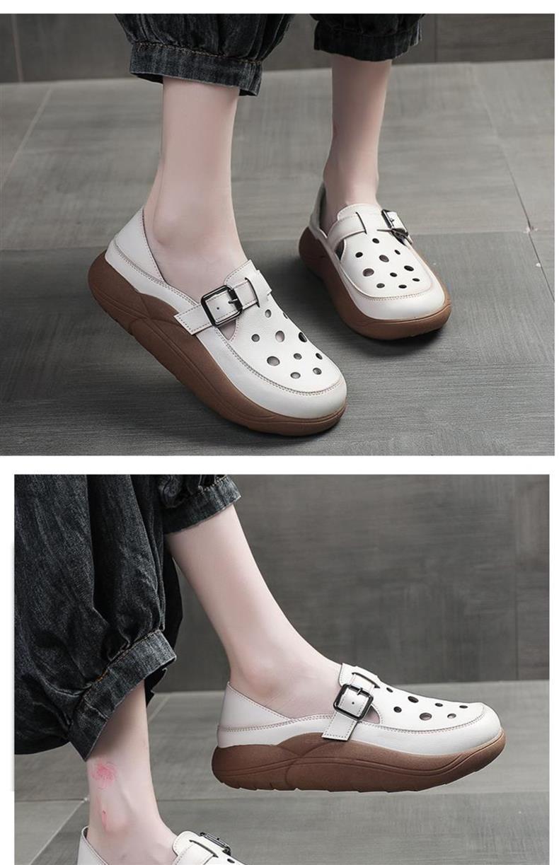卸売りの厚い底のサンダルの女性の洞の靴の2025夏の新型の包頭の楽福の靴の透かし彫りの厚い底の高くなるサンダルの女性