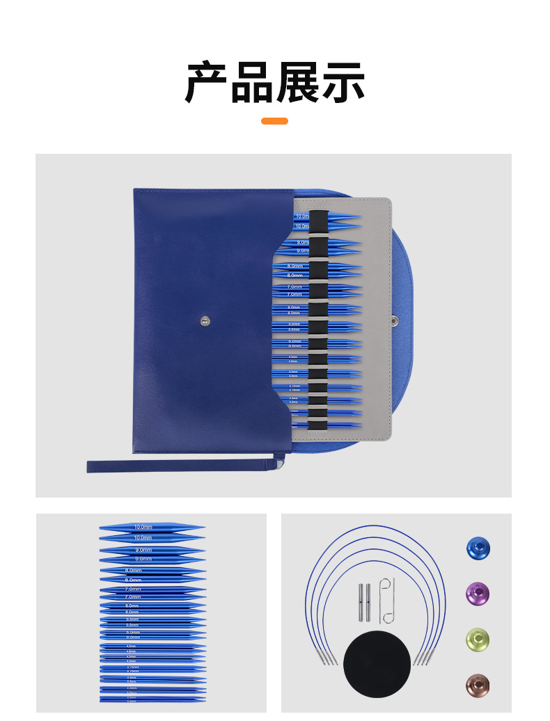跨境可拆环形针旋转绳针氧化铝环形毛衣针套装蓝色环形针钩针