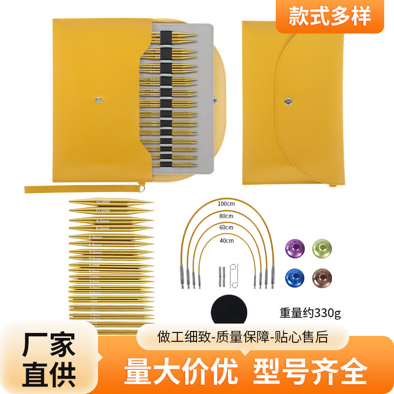 跨境毛衣针编织工具毛衣针青金色氧化铝袖子针青金色环形针