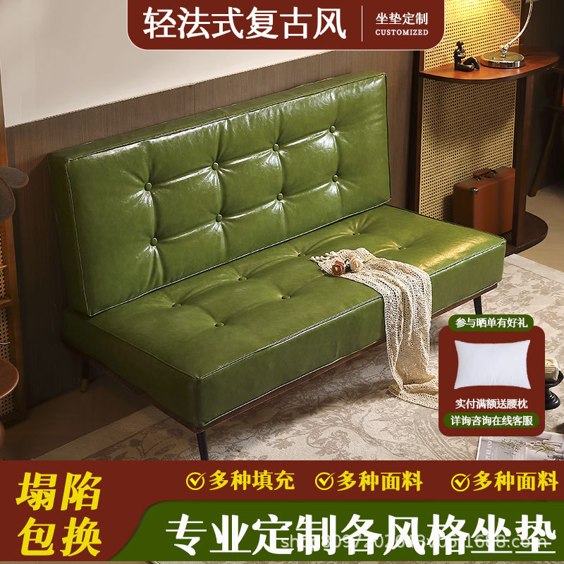 カスタマイズされたオイルワックスレザーソファクッション、背もたれ付き無垢材フロアシートクッション、厚みのあるスポンジクッション、猫傷防止レザーソフトクッション