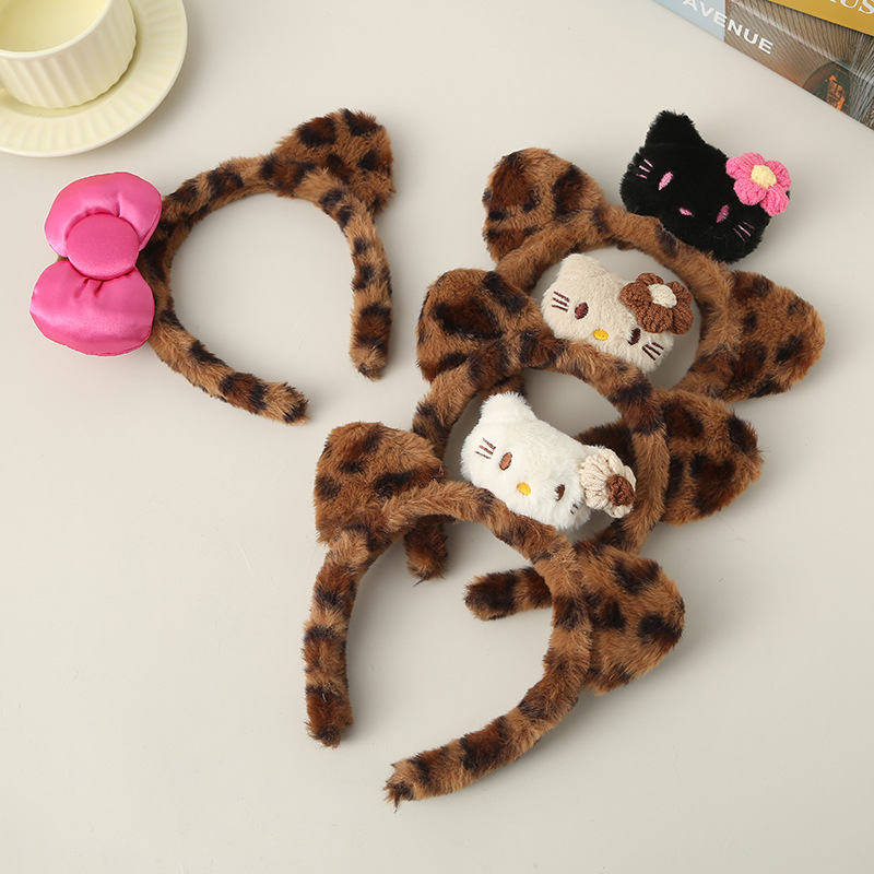 漫画かわいい猫ぬいぐるみヘッドバンド黒革キティシャンプーと洗顔ヘッドバンドヘアアクセサリー帽子メーカー卸売