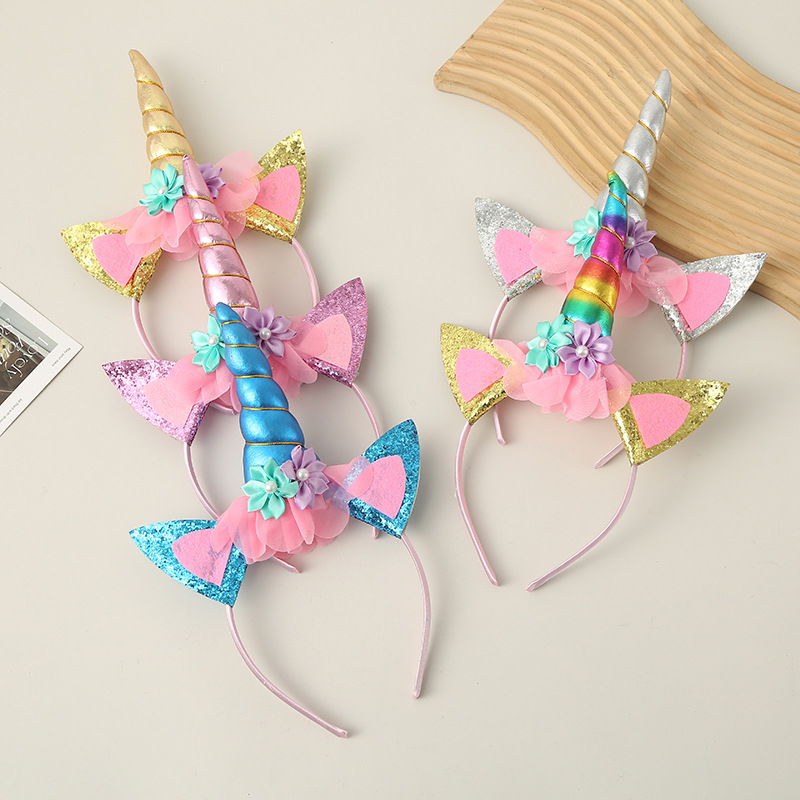 漫画かわいいユニコーン髪フープins风ファンタジーレインボーヘッドフープ学生子供パーティークリエイティブ髪饰り卸売