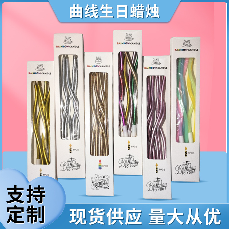 曲线生日蛋糕蜡烛 ins风彩色长杆装饰蜡烛创意螺旋状弯曲生日蜡烛