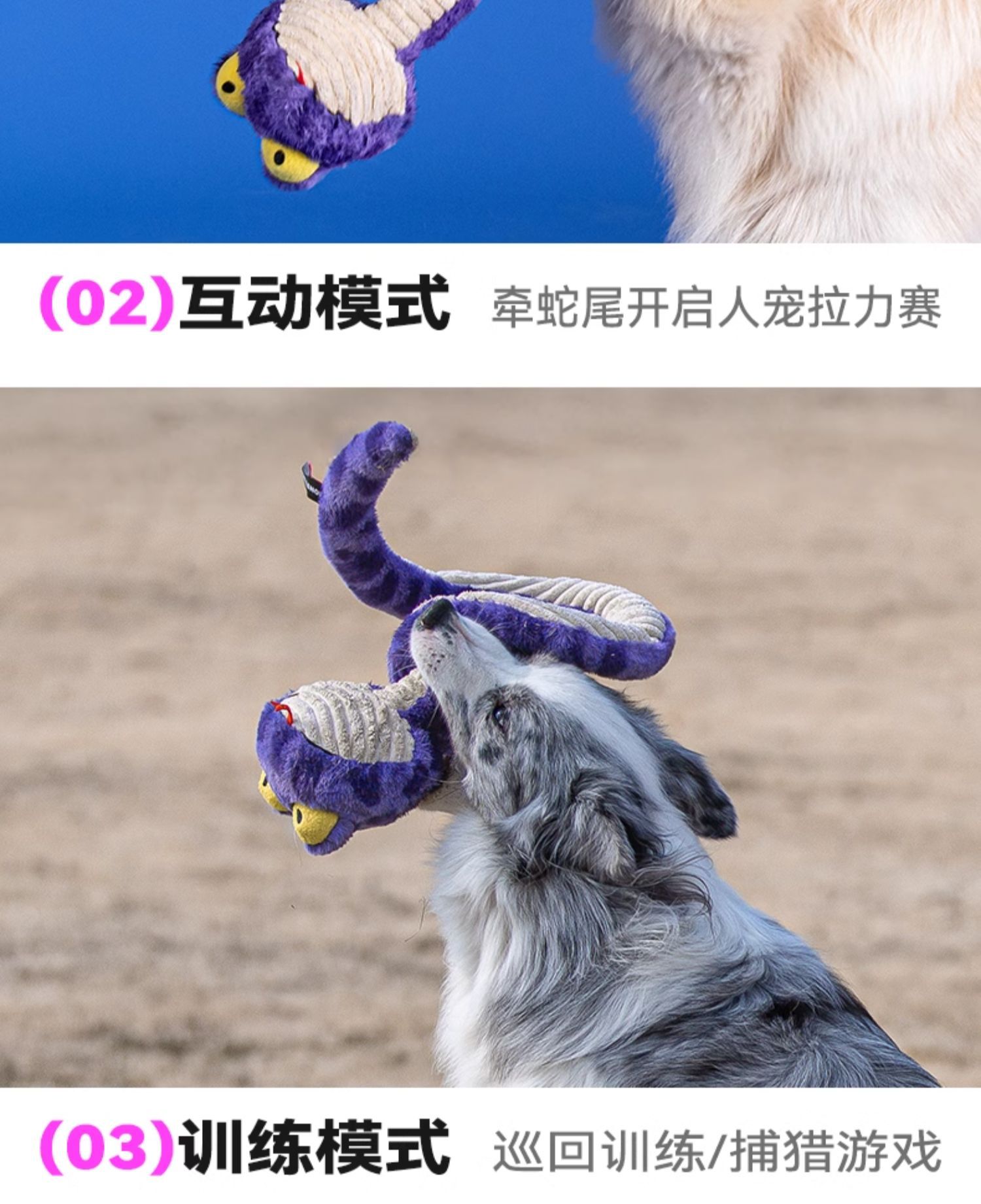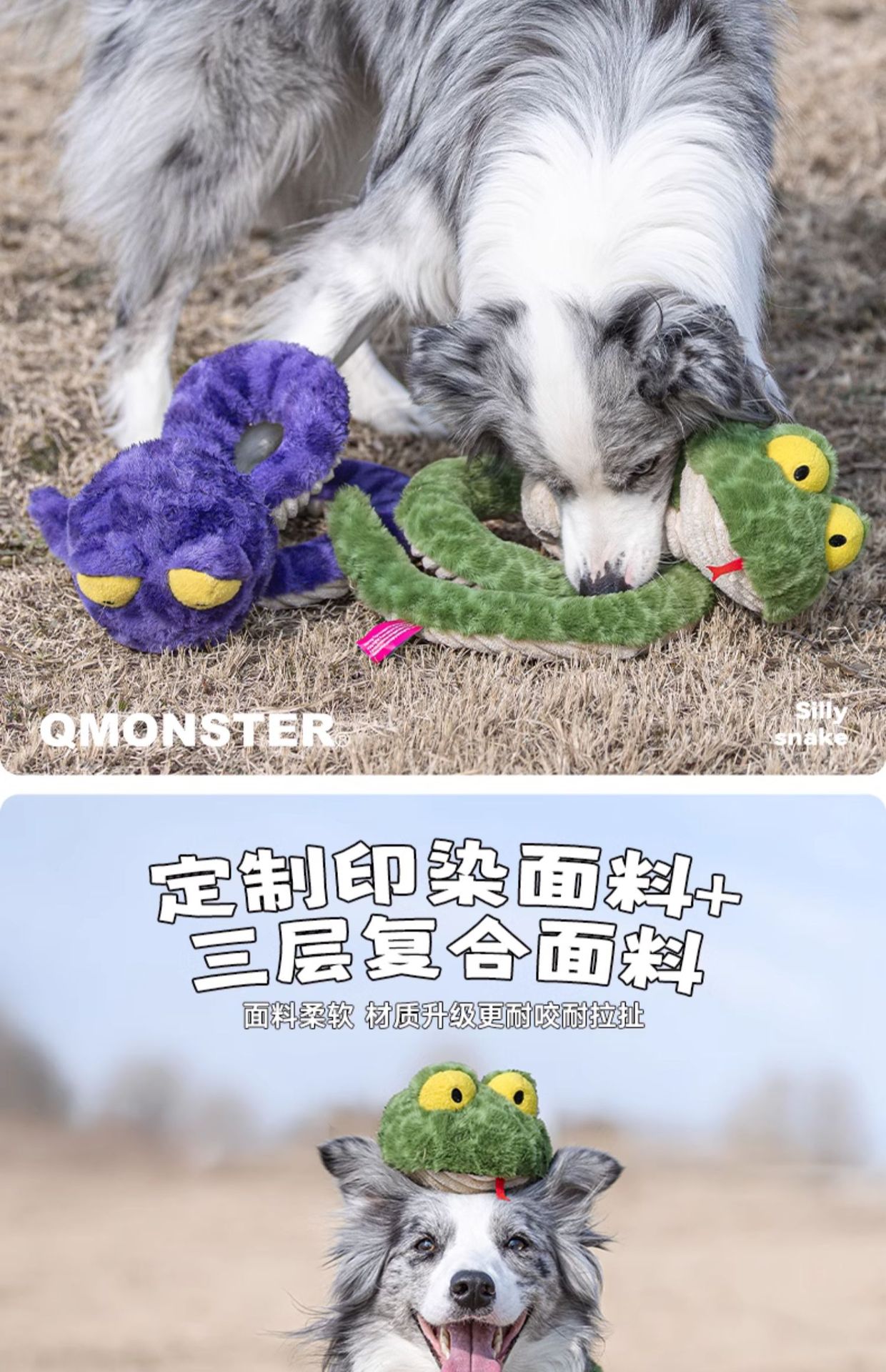 QMONSTER呆呆蛇丰荣毛绒发声玩具中大型犬大号耐咬拔河狗磨牙公仔