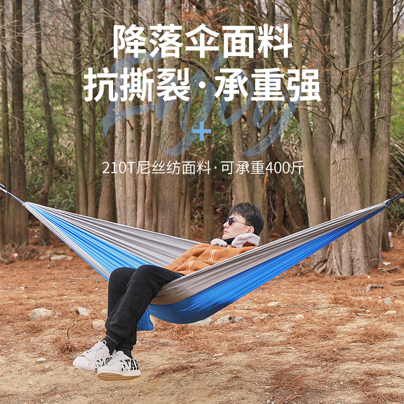 シングル・ダブル用ナイロン製アウトドアハンモック、簡易ブランコ、横転防止、キャンプ用ポータブルアウトドアハンモック