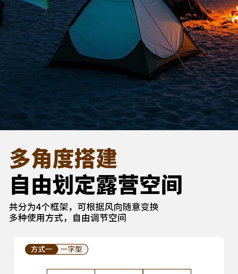 屋外キャンプテント防水日よけ塗装銀天幕日焼け止め複数人四角型天幕スポットクロスボーダー人気