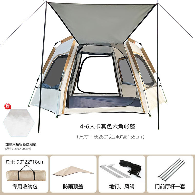 六角テント屋外キャンプ厚手全自動家庭用携帯旅行装備フルセット防雨キャンプピクニック