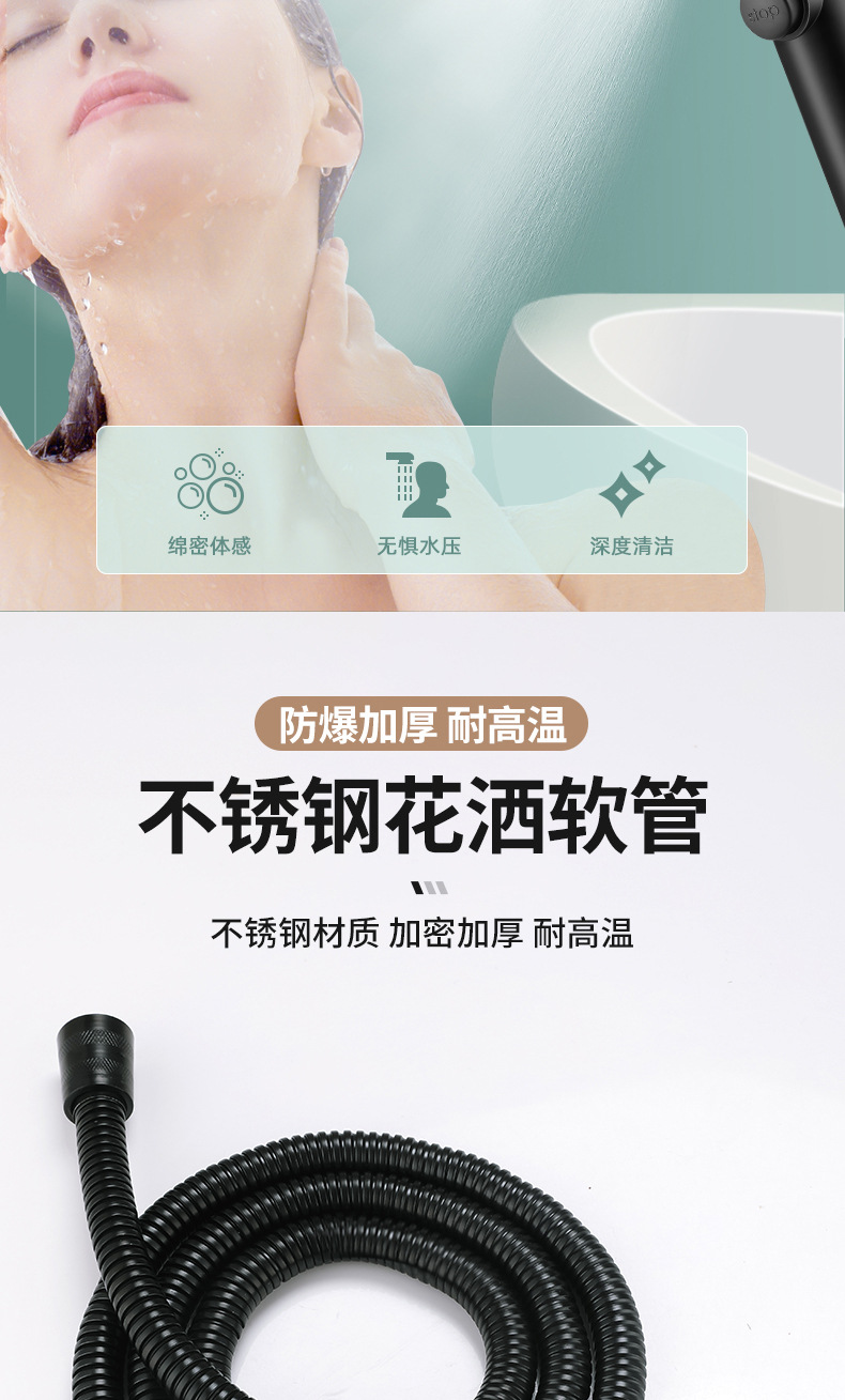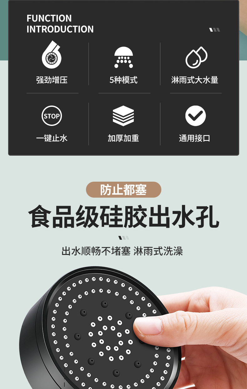 德国增压花洒喷头加压浴室家用淋浴头套装淋雨大出水量莲蓬头