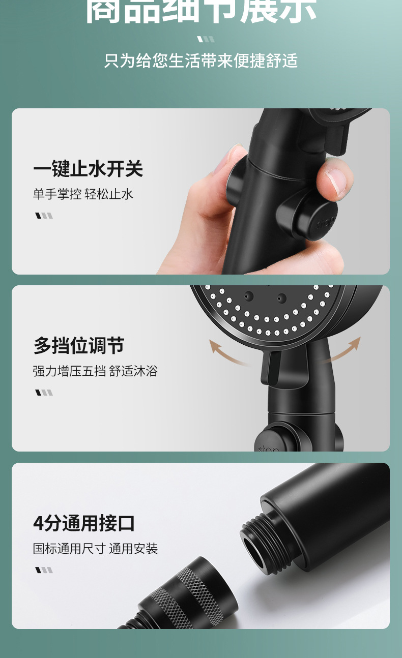 德国增压手持淋浴花洒喷头支架浴室热水器洗澡加压淋雨沐浴莲蓬头
