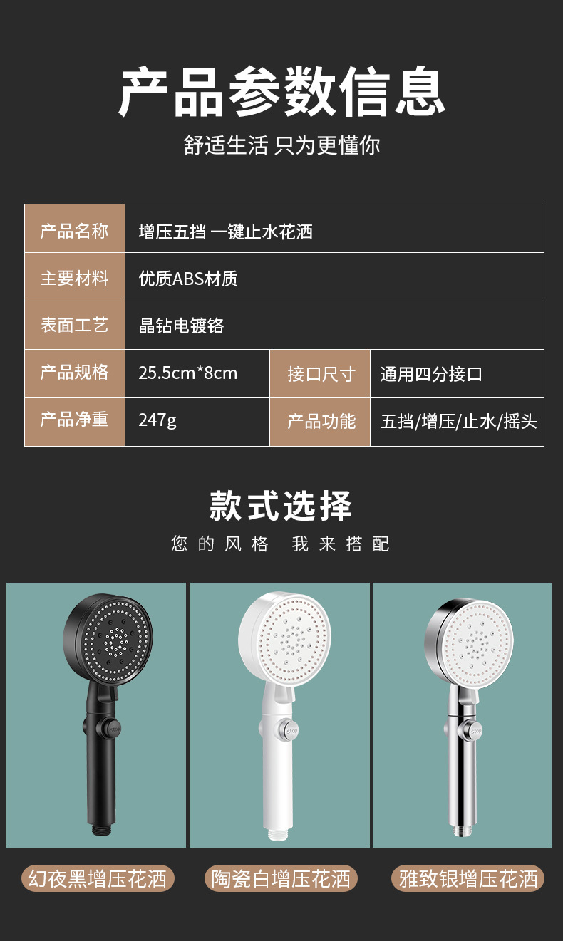 淋浴增压花洒喷头浴霸热水器淋雨洗澡家用浴室沐浴洗澡淋蓬头花洒