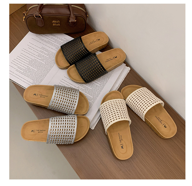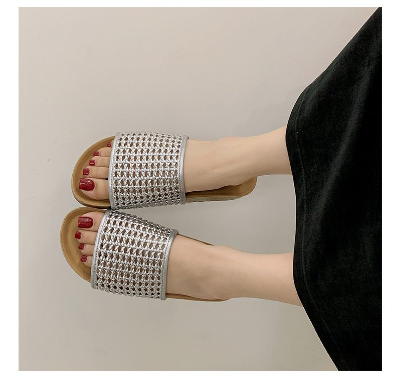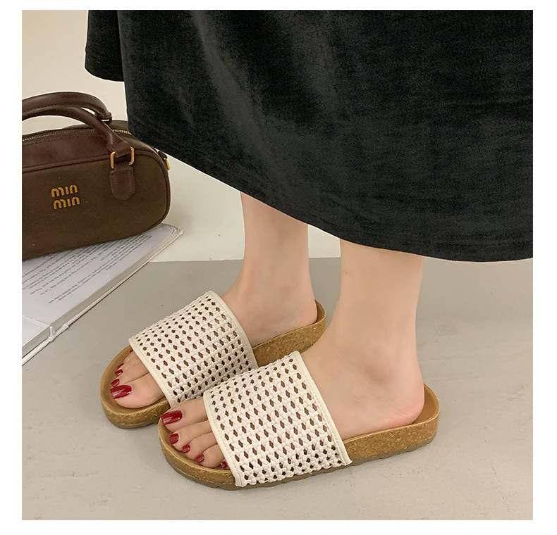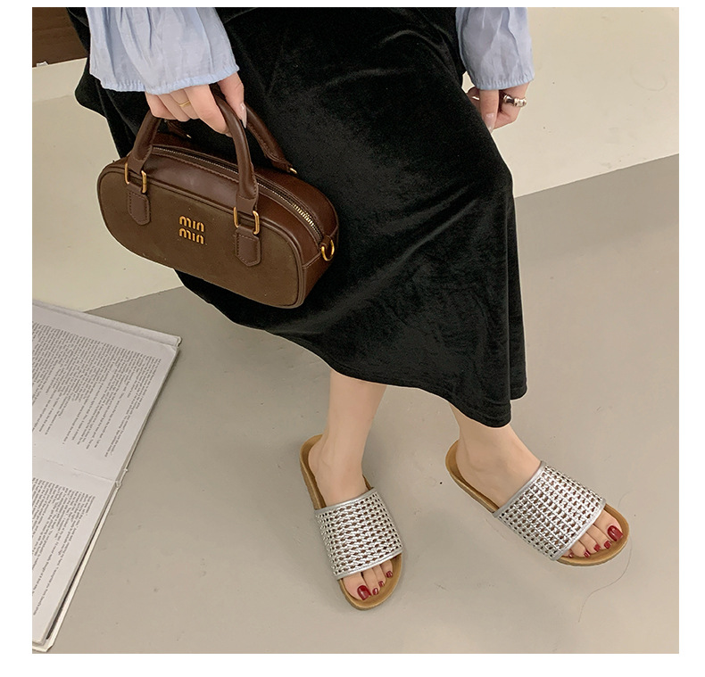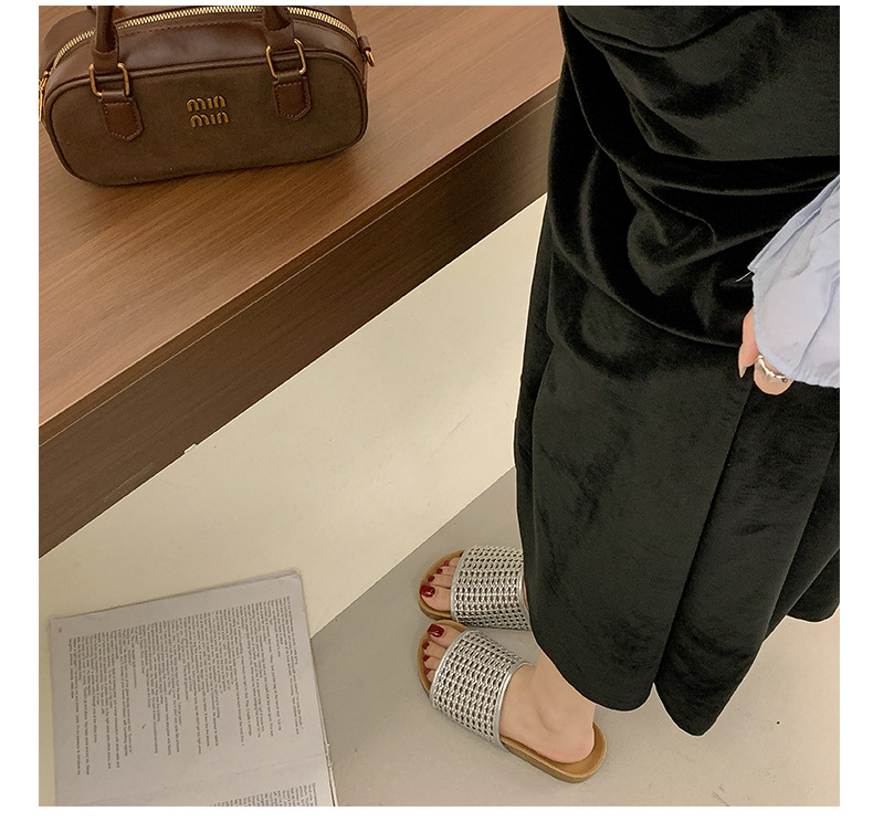 フランスの平底の足の指の冷たいスリッパの女性は夏に2025の新型の柔らかい底のアンドロメダ風を着てスカートのドリルのスリッパを配合します。