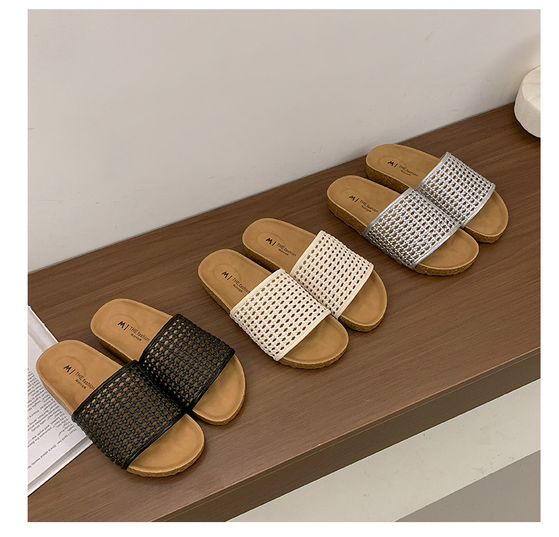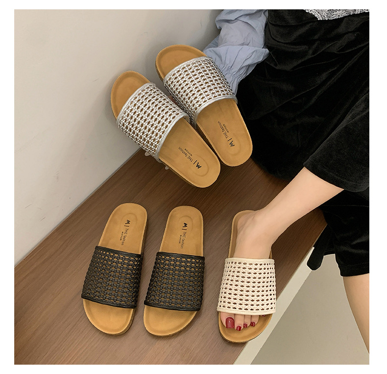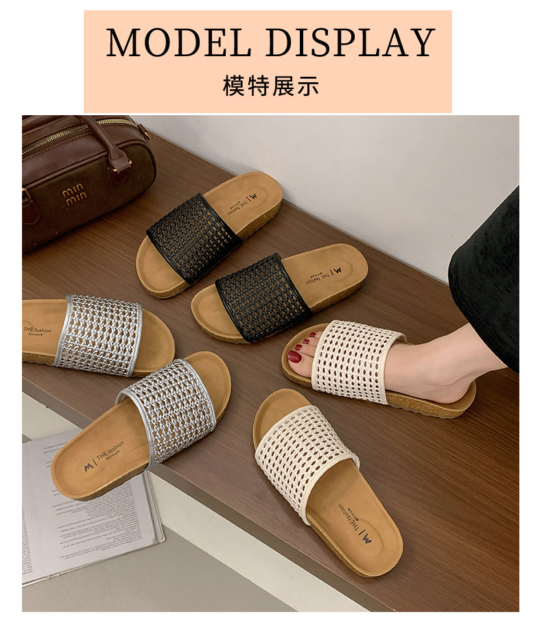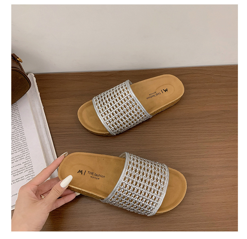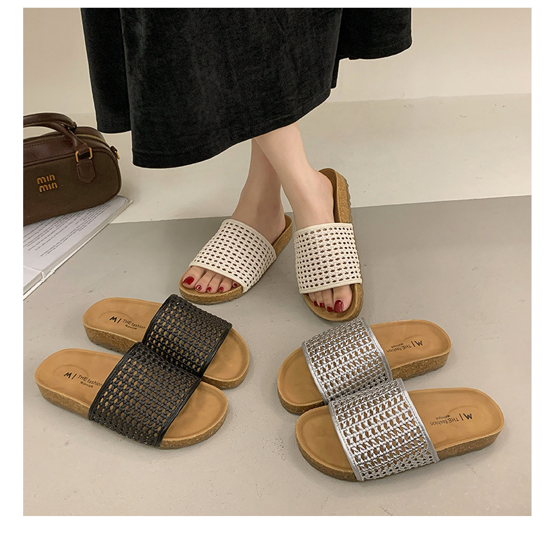 フランスの平底の足の指の冷たいスリッパの女性は夏に2025の新型の柔らかい底のアンドロメダ風を着てスカートのドリルのスリッパを配合します。