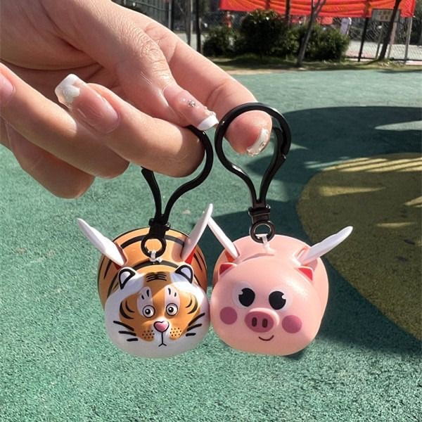 Douyinの人気の小さなフライングタイガーと小さなピンクのブタの超かわいい漫画のキーホルダー、ロープペンダント、飛行おもちゃ