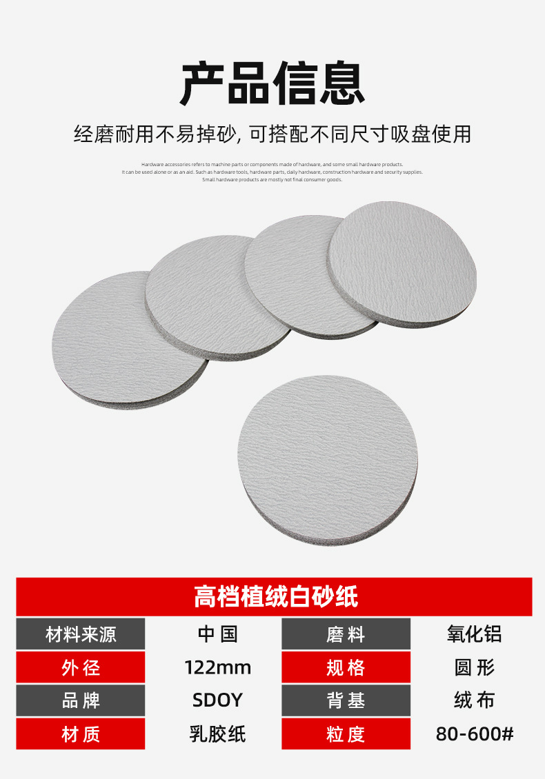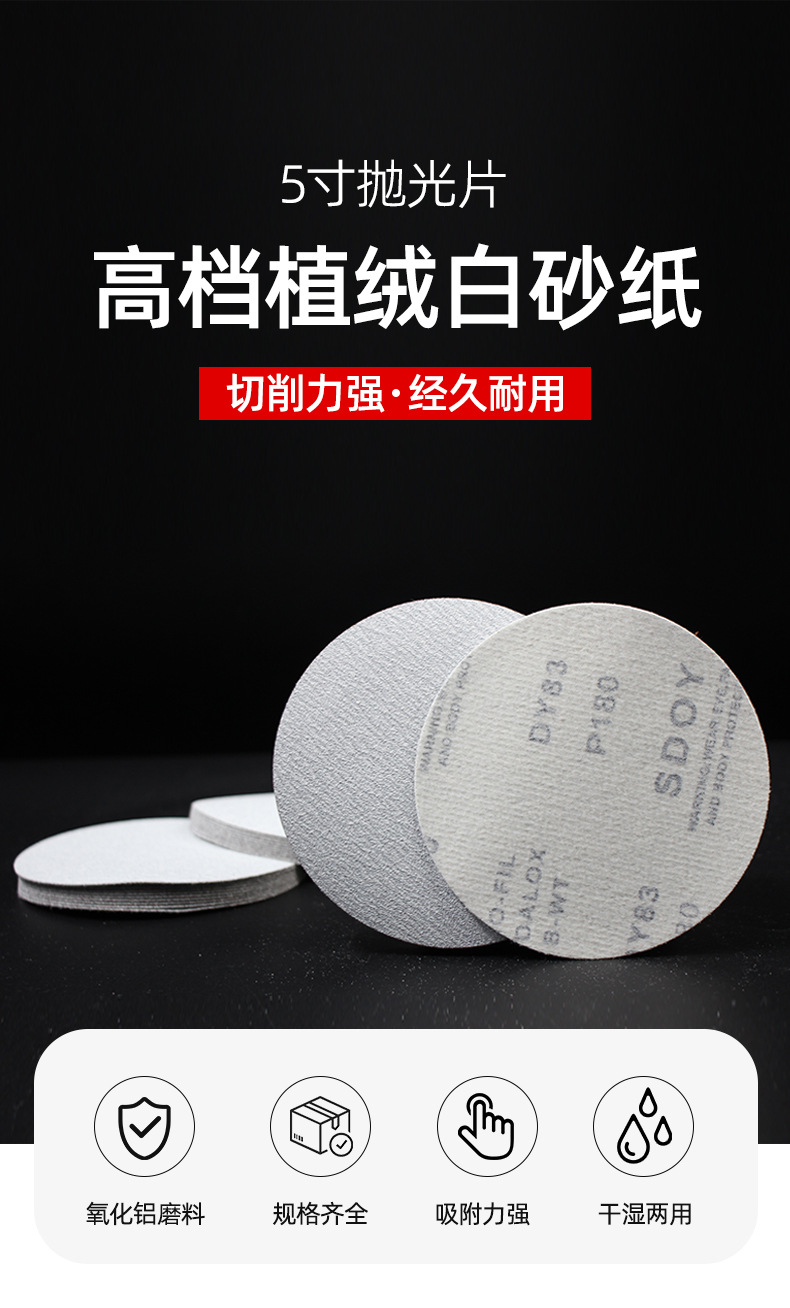 SDOY ハイエンド植毛白サンドペーパー金属ボディ研磨アルミ合金ホイールサンドペーパー研磨シート 5inch 白サンドペーパー