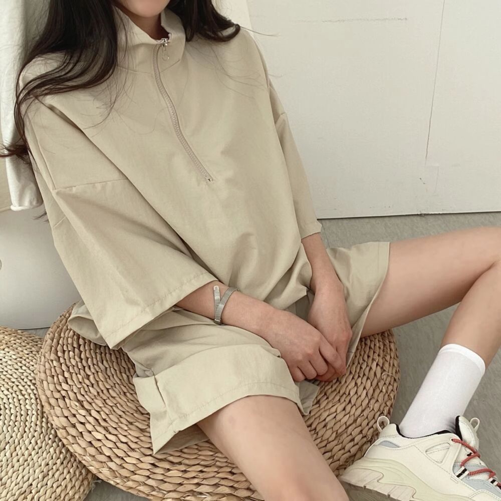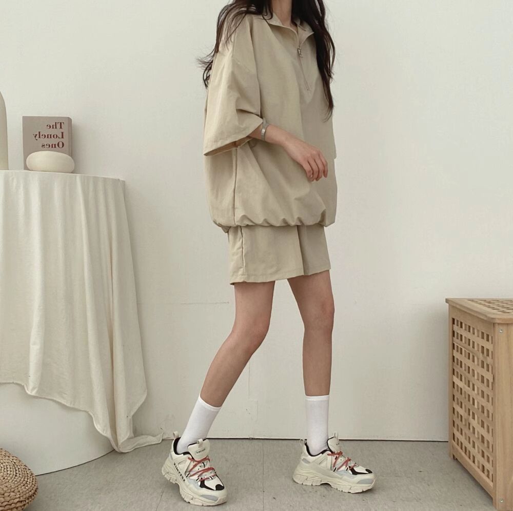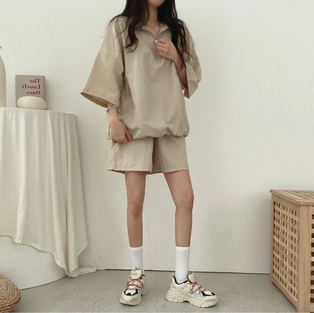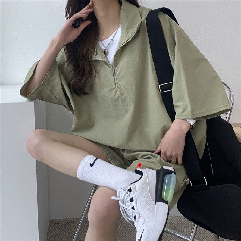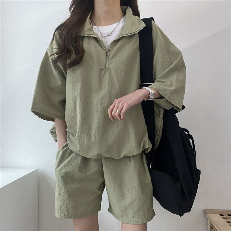 ヨーロッパステーション夏デザインスポーツウェアレディーススーツ韓国風ゆったりおしゃれレトロ半袖ショーツ2点セット