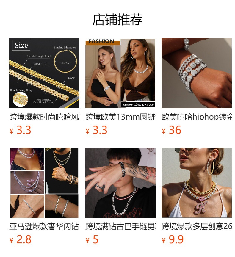 ニッチなデザインのキューバチェーン、ヨーロッパとアメリカの菱形の太い多様なサイズの頑丈なチェーン、卸売、個性的なヒップホップネックレス