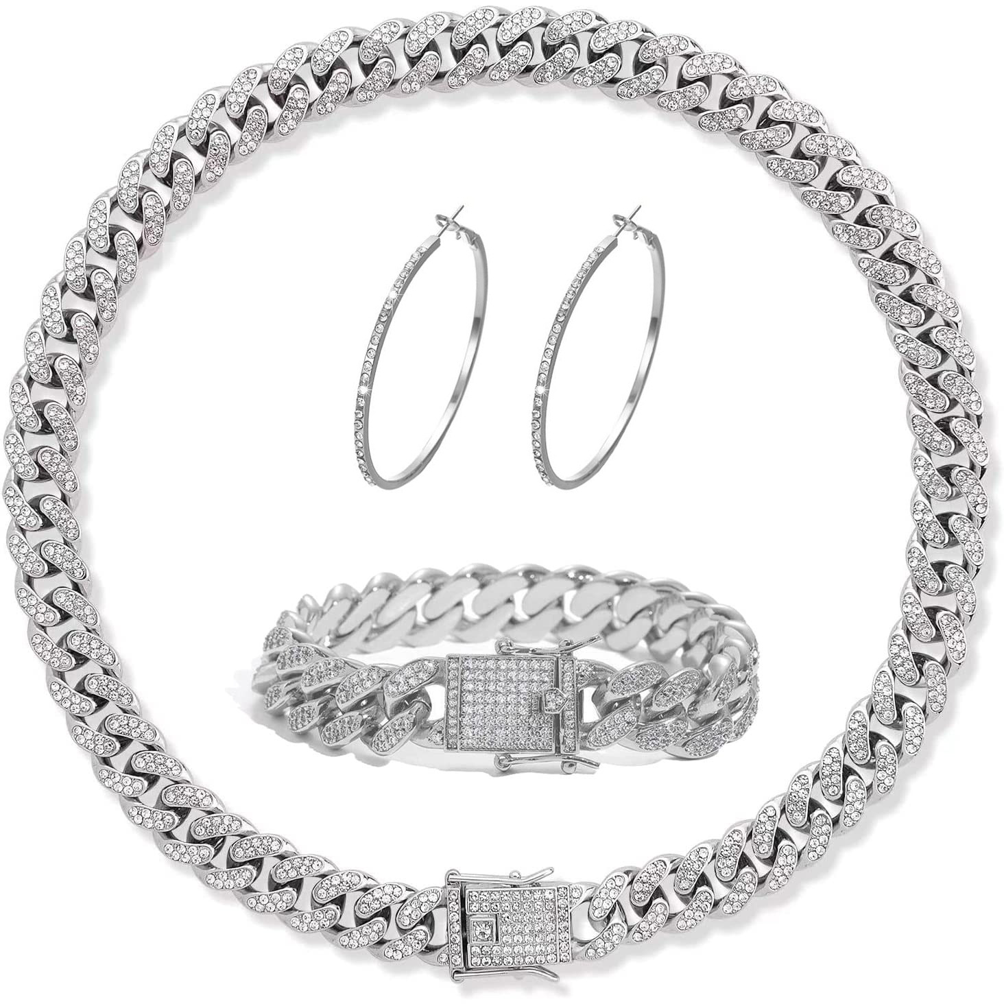 国境を越えた欧米の13mm円鎖満ドリル男女合金ネックレス潮人個性ラップヒップホップスキューバチェーンセット