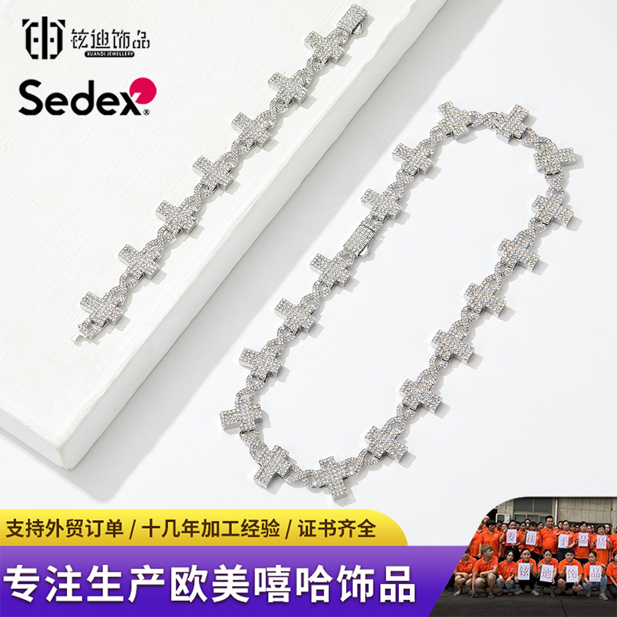 欧米のクロスボーダー個性ヒップホップ10mmクロスの花のネックレスの女性の高級感がいっぱいです。