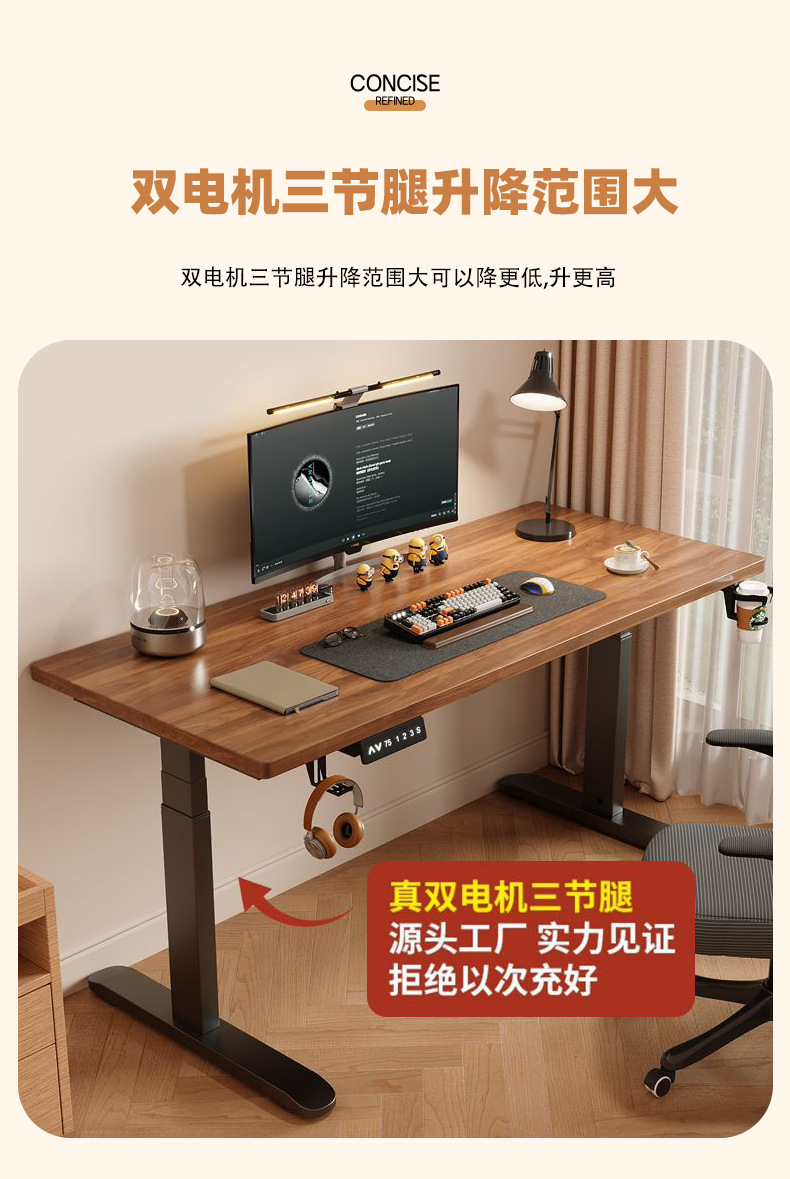 实木电动升降桌台式电脑桌学生书桌学习桌家用办公桌子双人工作台