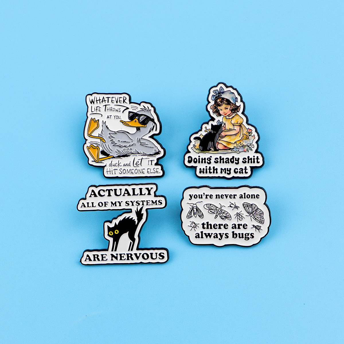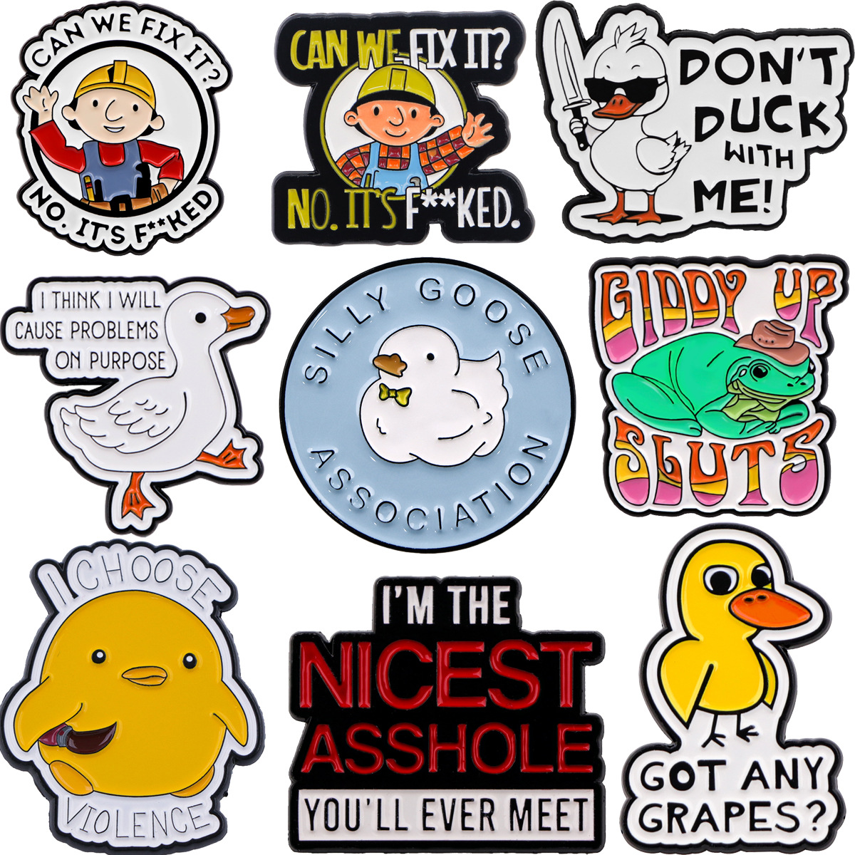 語録ブローチ漫画アヒル模様金属バッジ創意英語アルファベットアクセサリー勲章衣装ブローチ英語