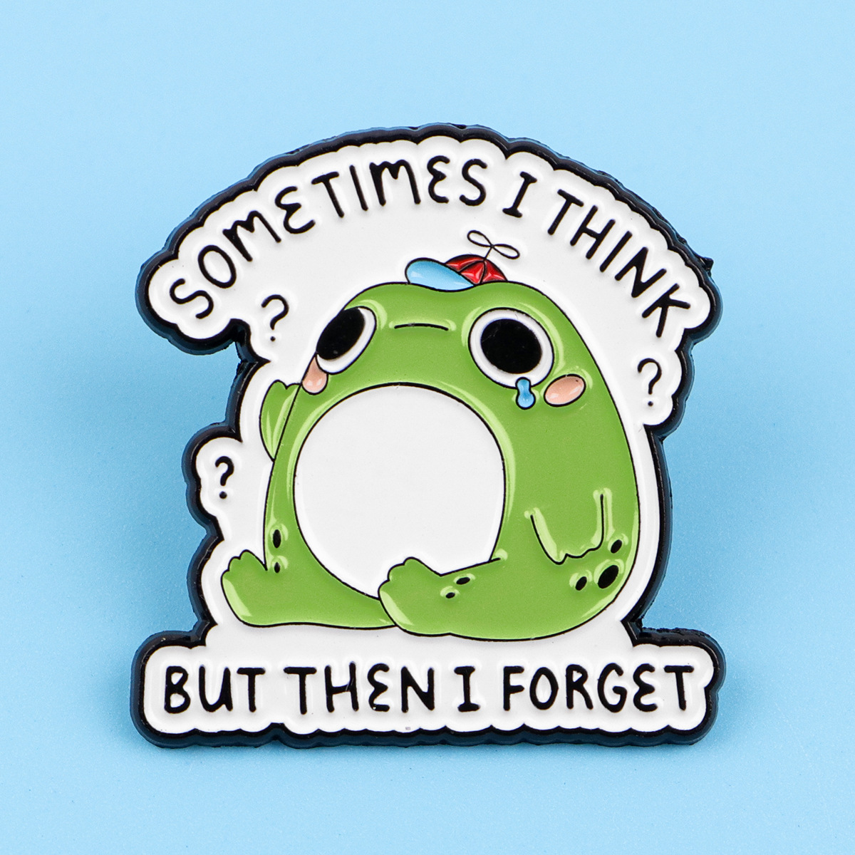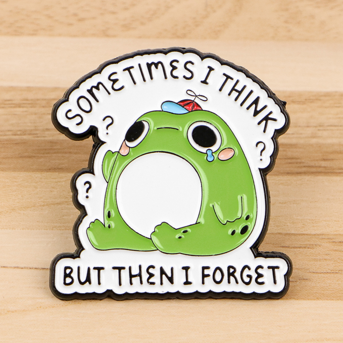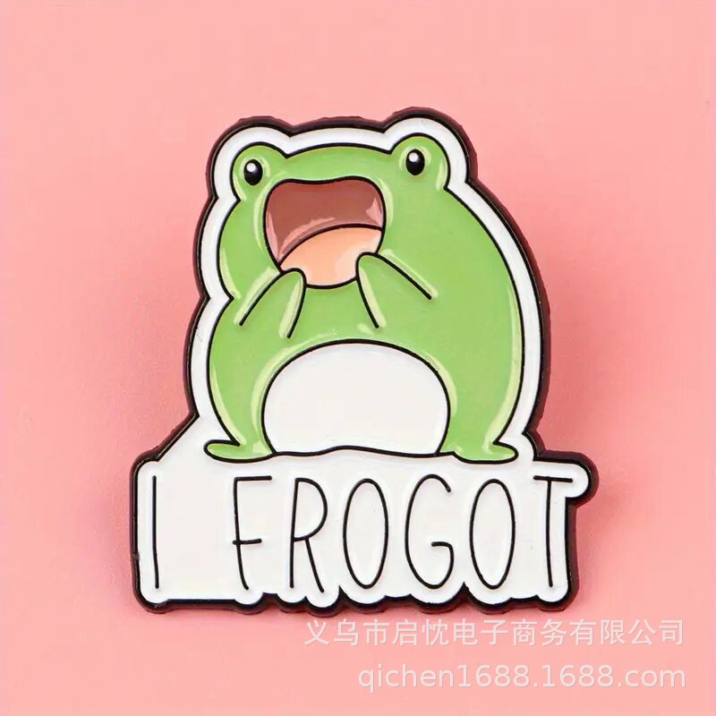 可爱青蛙亚克力徽章“我忘了”卡通动物别针适用于背包夹克和配饰