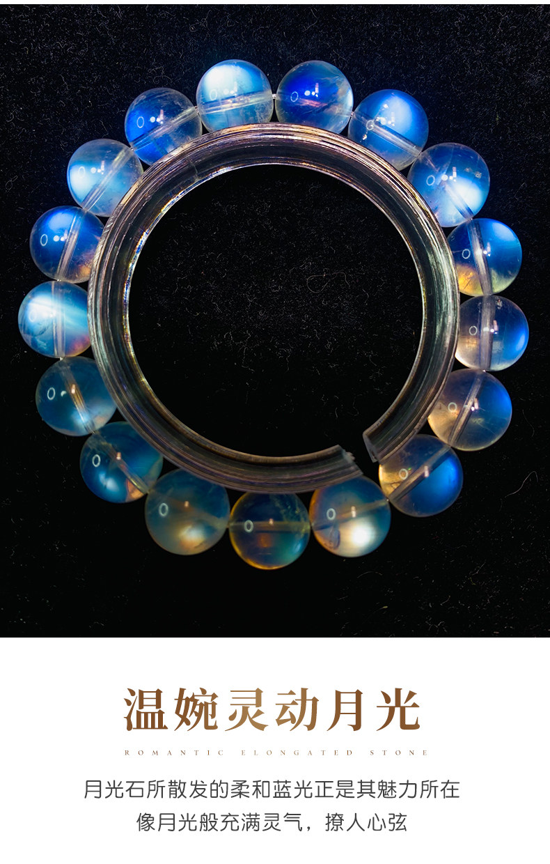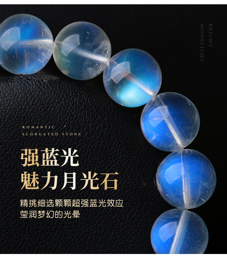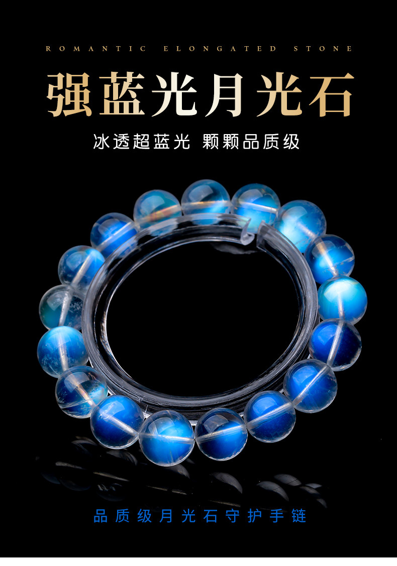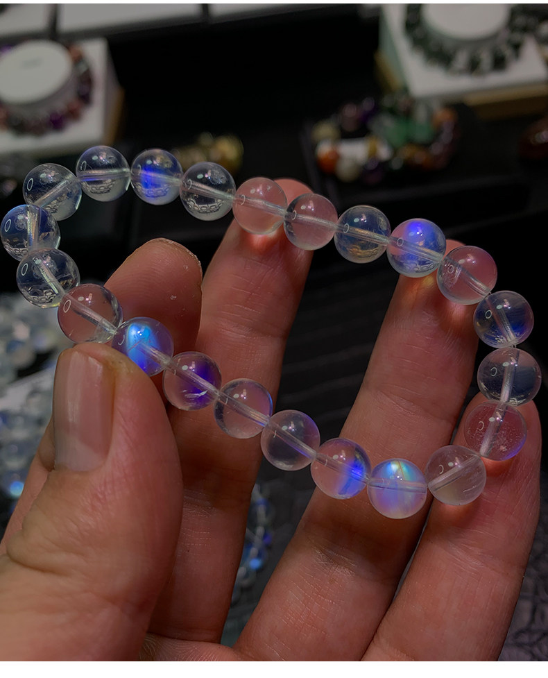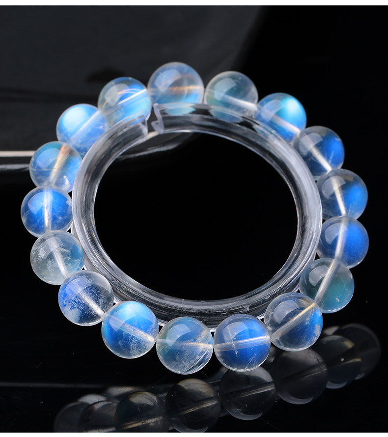 天然ムーンストーンブレスレット女性用ブルームーンライトガラスインド素材氷透明ブルーホワイトムーンライトレインボーブレスレットシングル