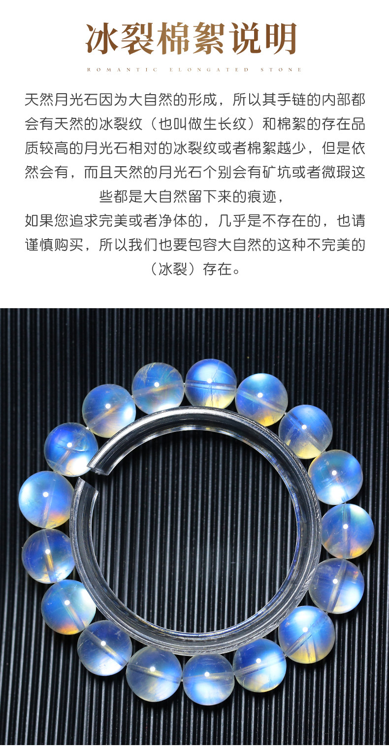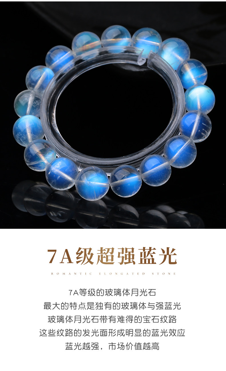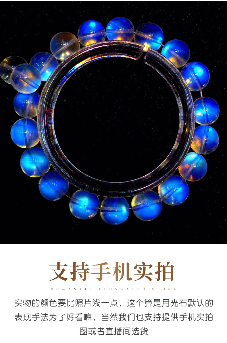 天然ムーンストーンブレスレット女性用ブルームーンライトガラスインド素材氷透明ブルーホワイトムーンライトレインボーブレスレットシングル