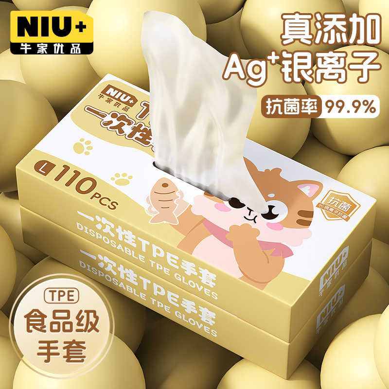 牛家使い捨て手袋tpe食品級peキッチン飲食パーティー滑り止め衛生独立包装