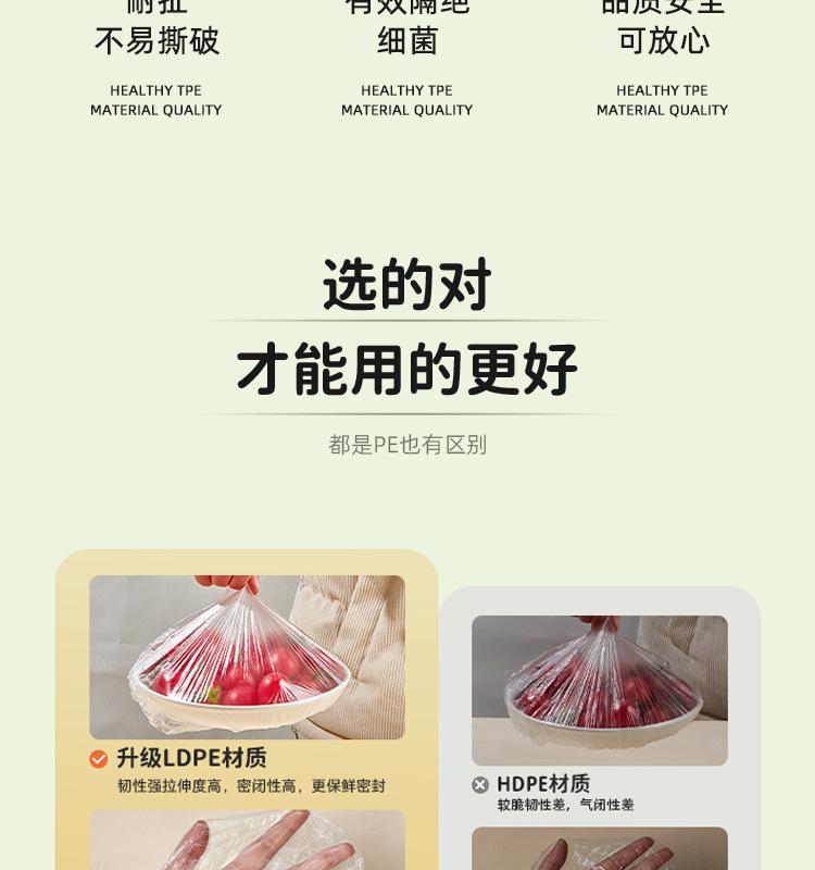 抗菌保鲜膜套罩一次性保鲜袋食品级厨房冰箱保险套保鲜罩带松紧口