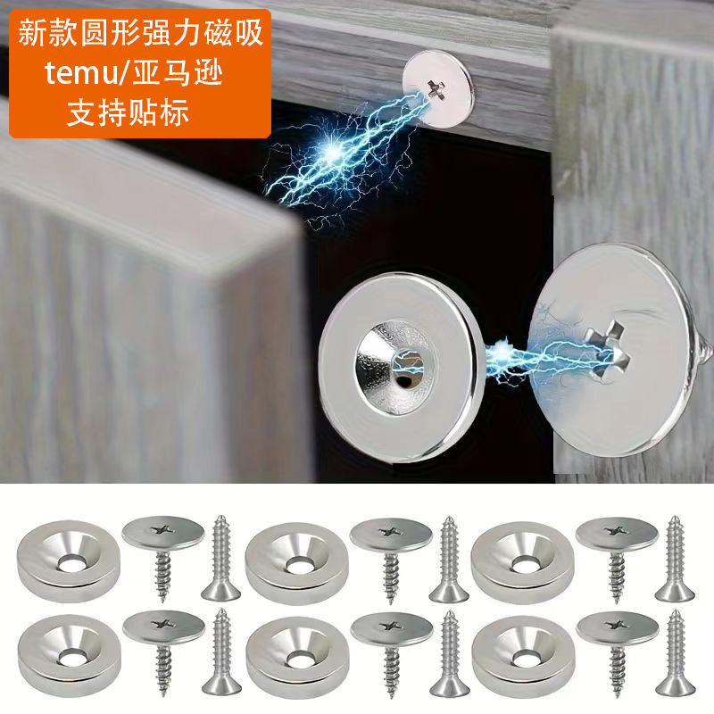 跨境圆形磁吸推拉门衣柜门自吸磁条贴片吸合器隐形移门磁铁强磁吸