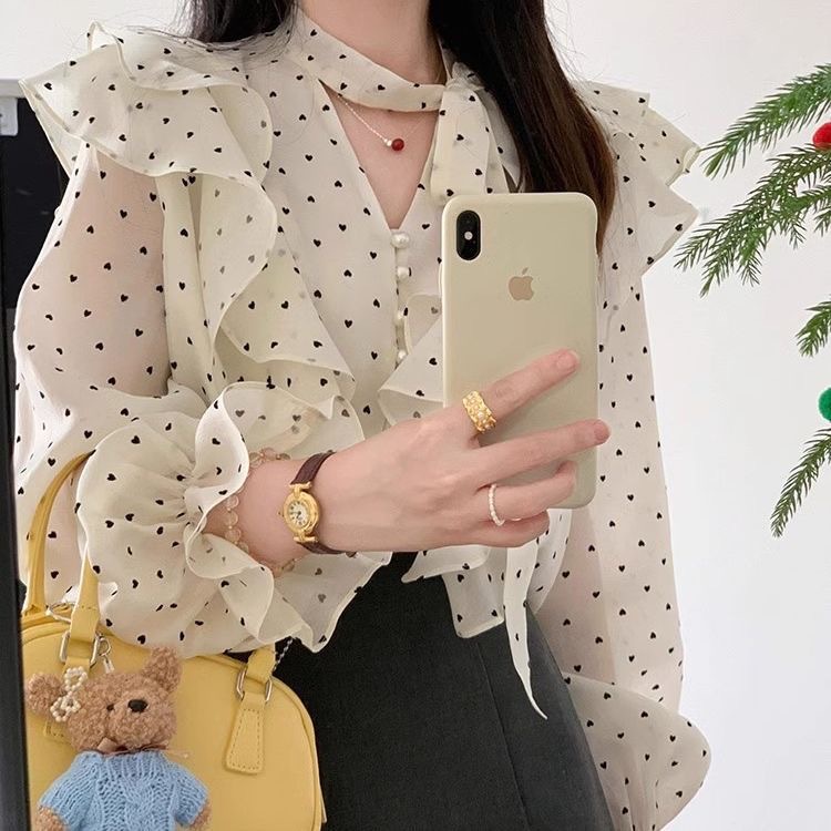 フランスのハスの葉の辺の波の結び目は長袖のシャツの2025春の新型の大衆のファッションの気質の高級な上着の女性を持ちます。