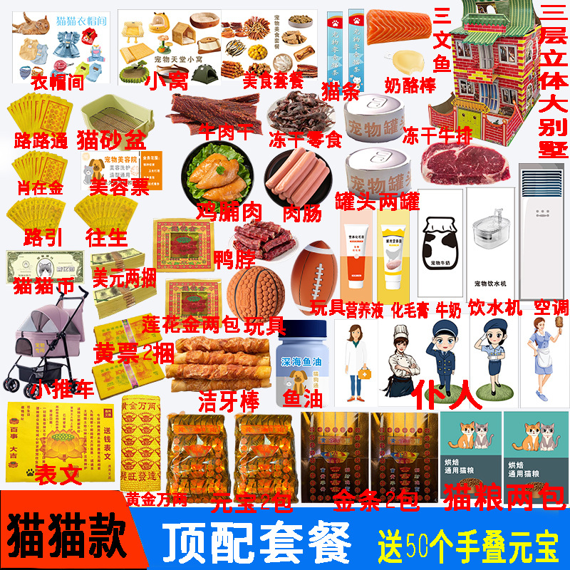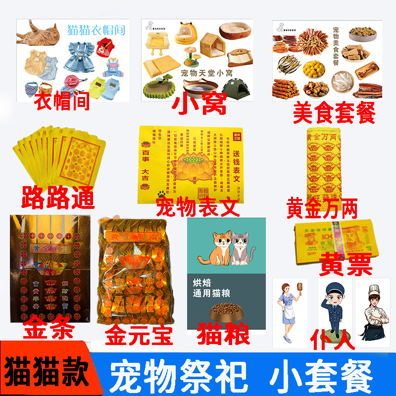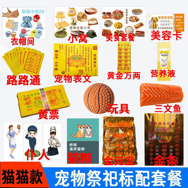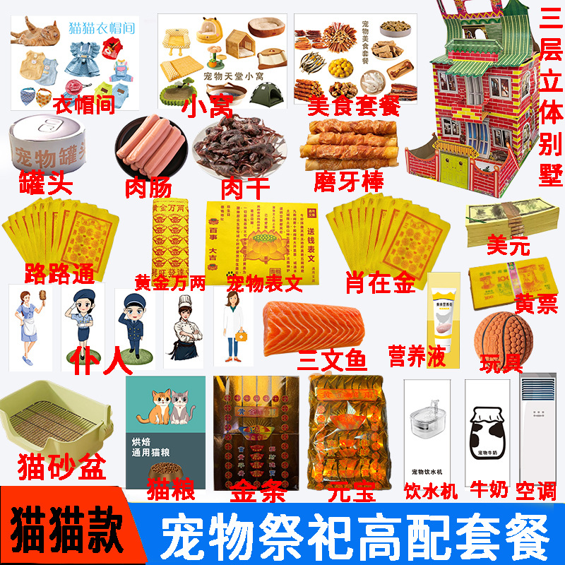 宠物祭奠狗狗祭品猫咪祭宠物三七猫狗猫咪头七宠物宠物纸烧直销