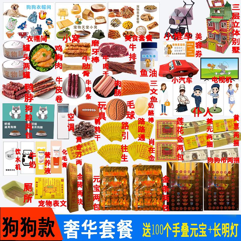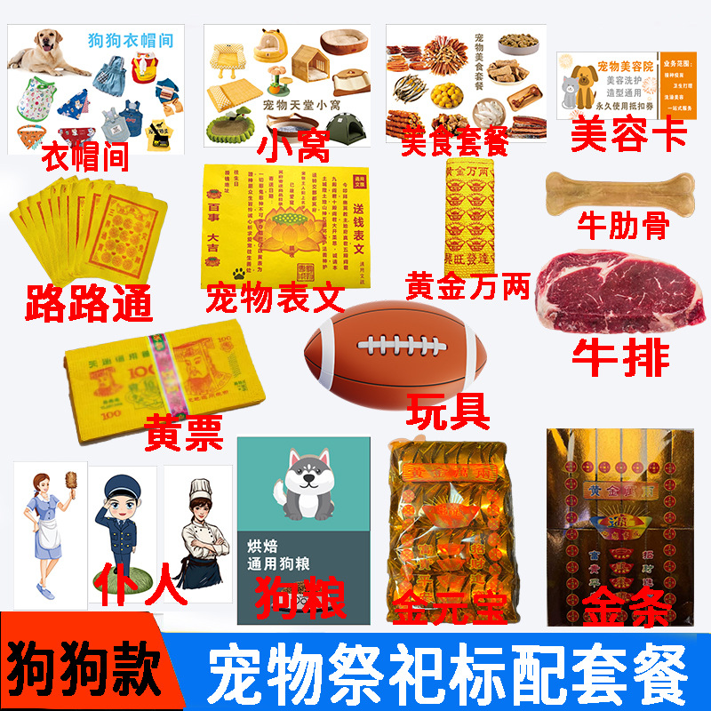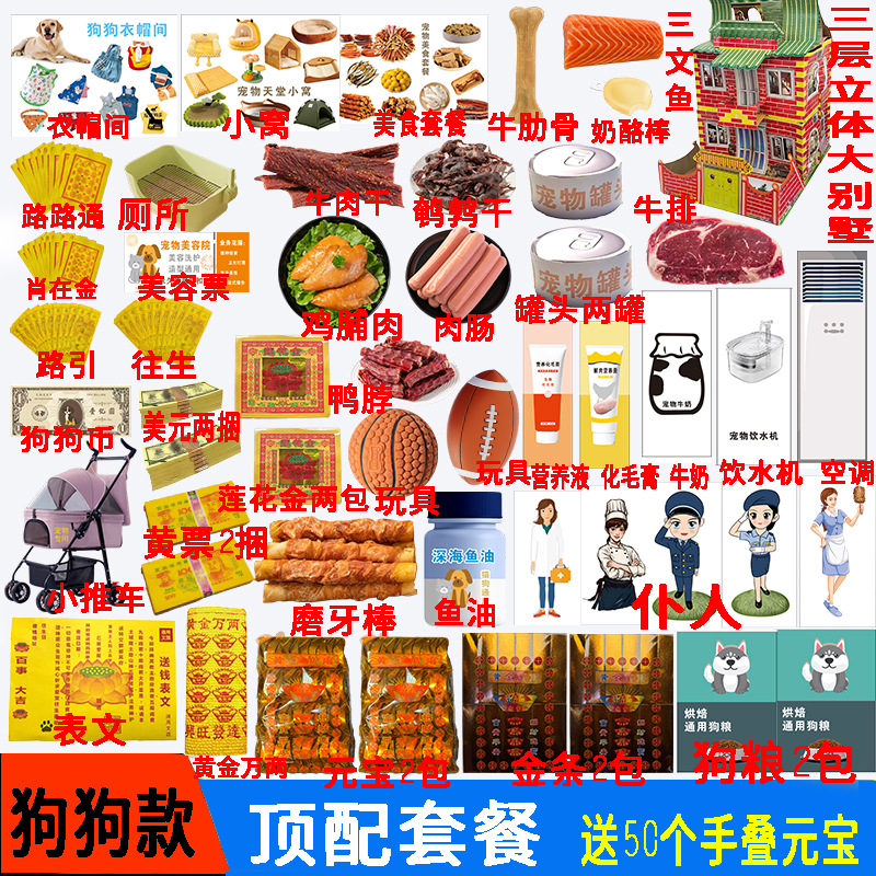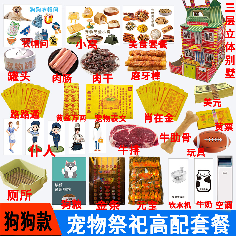 宠物祭祀贡品狗狗头七猫咪全套宠物纸烧宠物贡品清明节周年纸钱祭