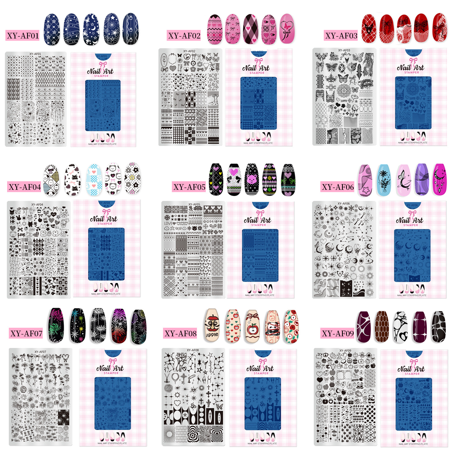 美甲印花钢板模具AF系列格纹蝴蝶月亮小花朵苹果元素转印板钢板