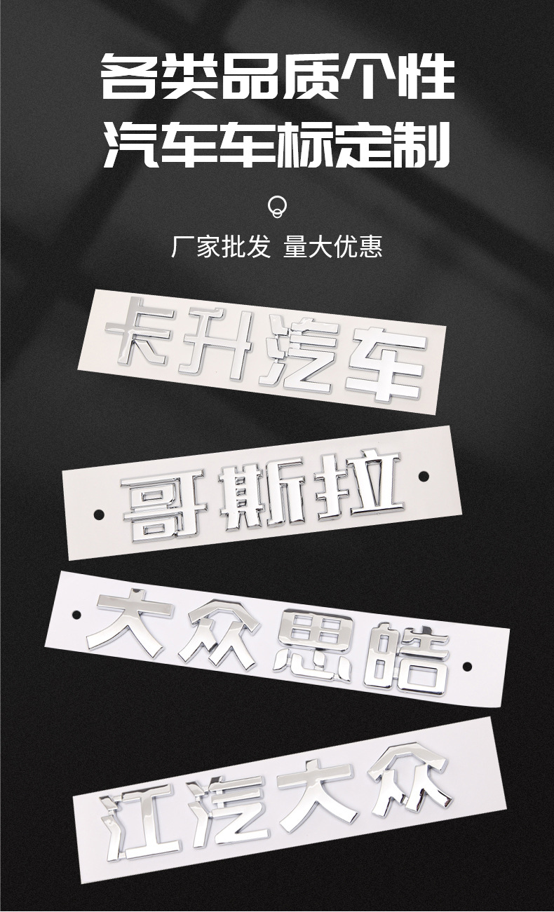 江淮大众立体クローム車標3D広告車尾文字標識ABS射出成形電気メッキ車ステッカーの製作に適用
