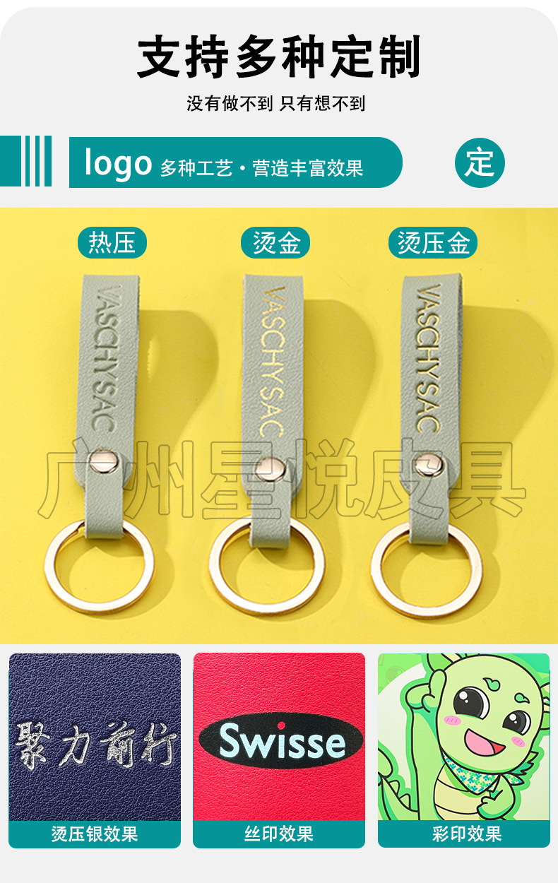 新款创意PU皮钥匙扣 纯色钥匙扣皮革 皮制汽车钥匙绳商务礼品