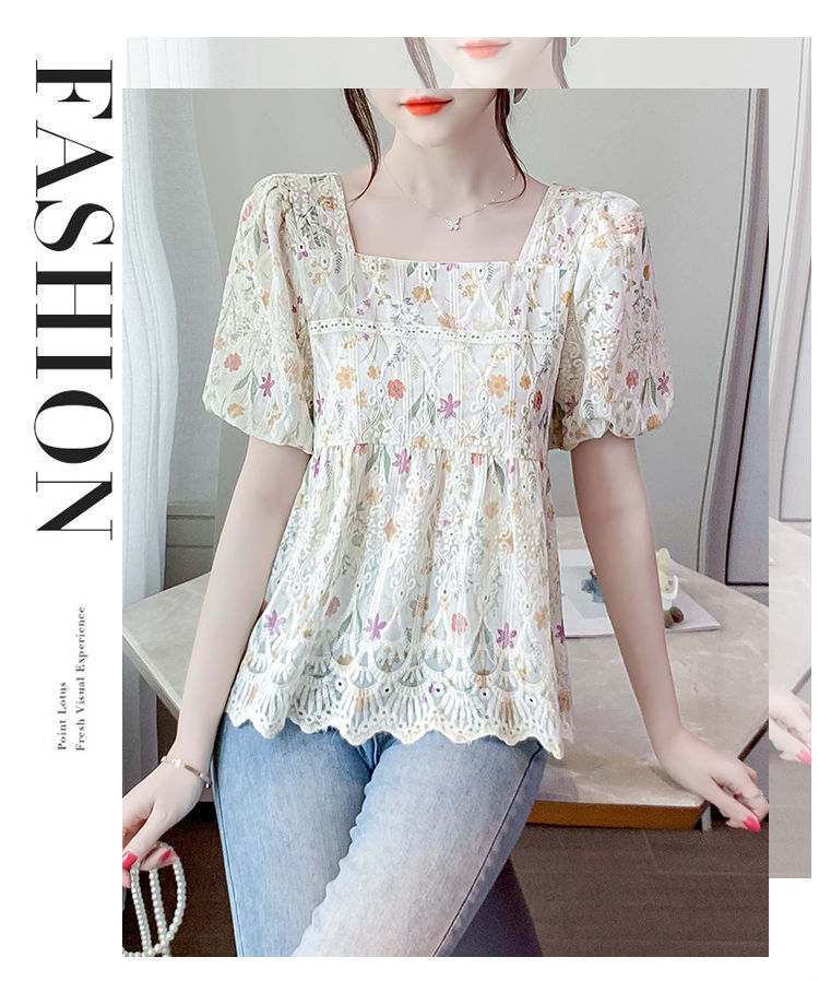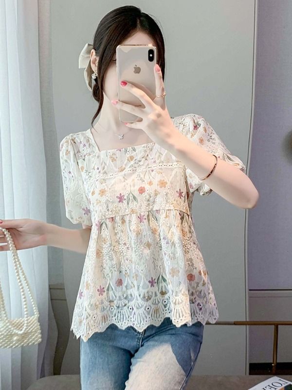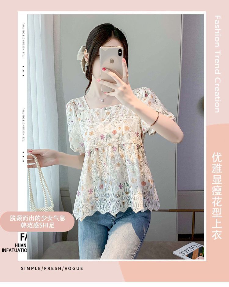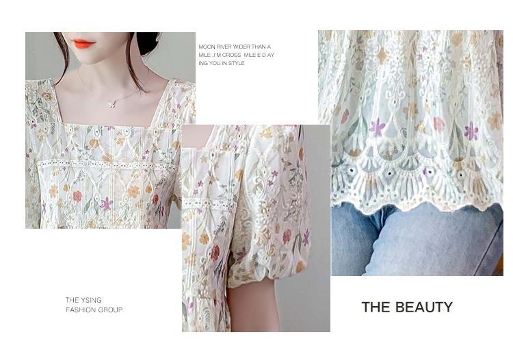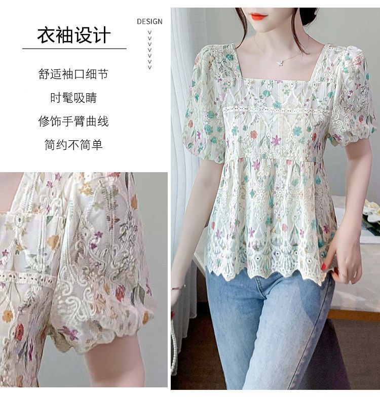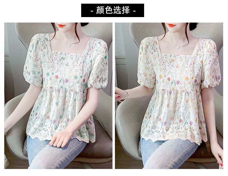 法式碎花雪纺衬衫女夏季2025新款宽松甜美泡泡袖时尚上衣漂亮小衫