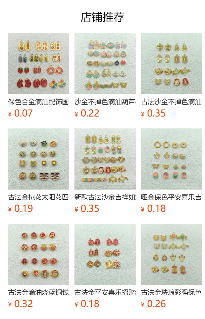 古法金高保色滴油配饰手链挂件小马吊坠如意算盘diy混款厂家批发
