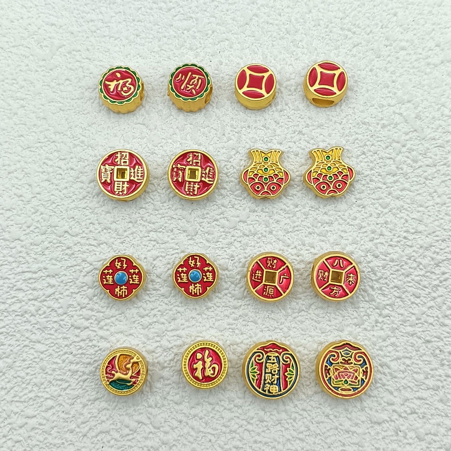 古法金滴油福字ペンダント、ブレスレット、ネックレス、ジュエリーアクセサリー、DIY合金ペンダント、吊り下げ飾り(混合タイプ)
