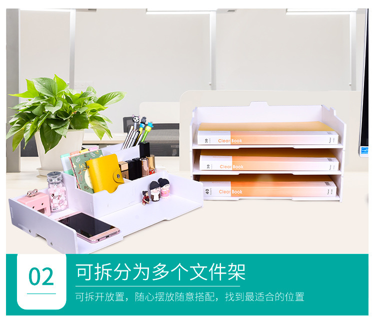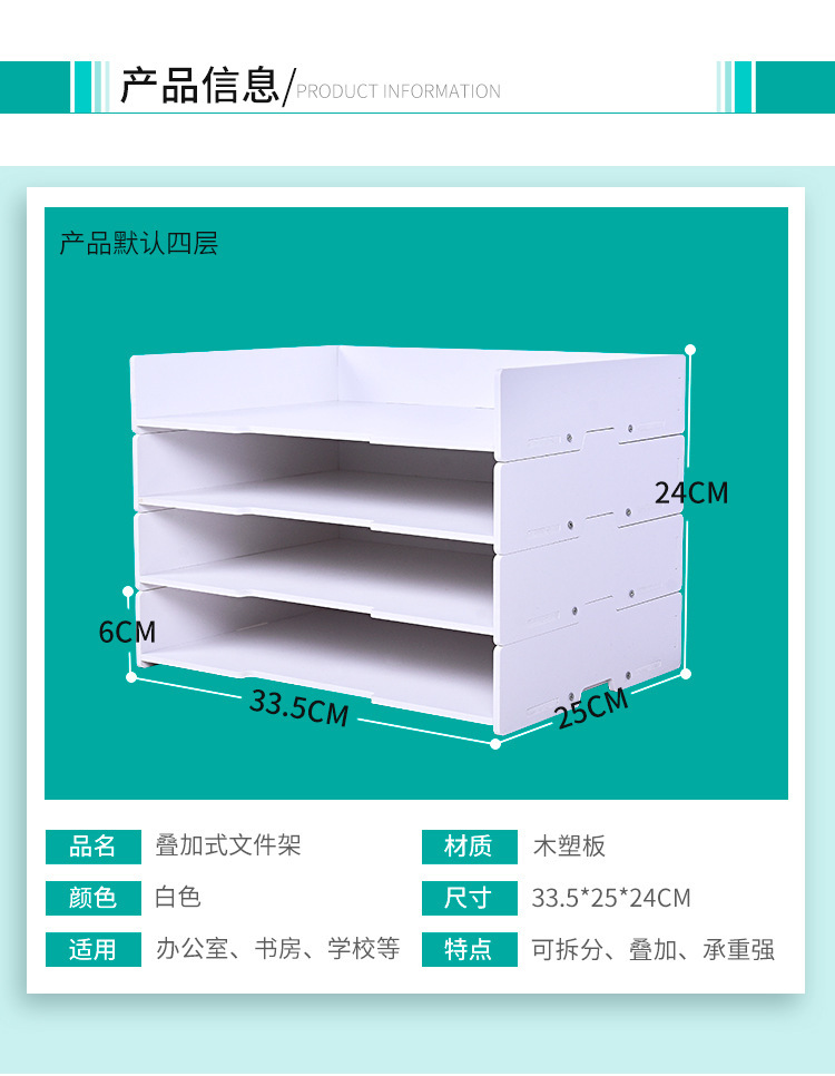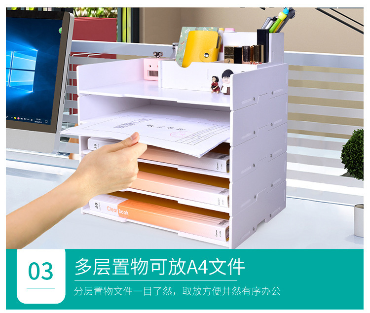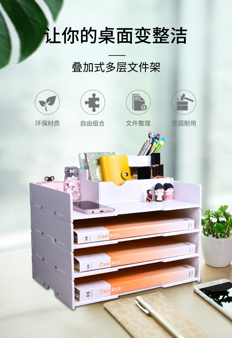 書類棚デスクトップ収納多層重畳可能組み合わせ大容量4資料棚事務用品層別棚