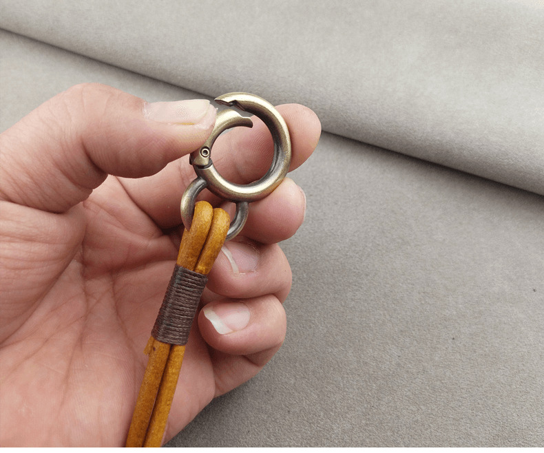 青古铜金属圆牛皮绳手工绑腊线短款手机绳U盘防丢挂件钥匙扣圈环